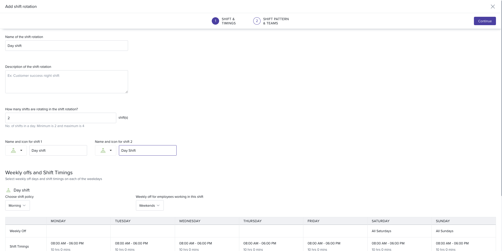 Add the number of shifts in the rotation → set Name and Icon for each.