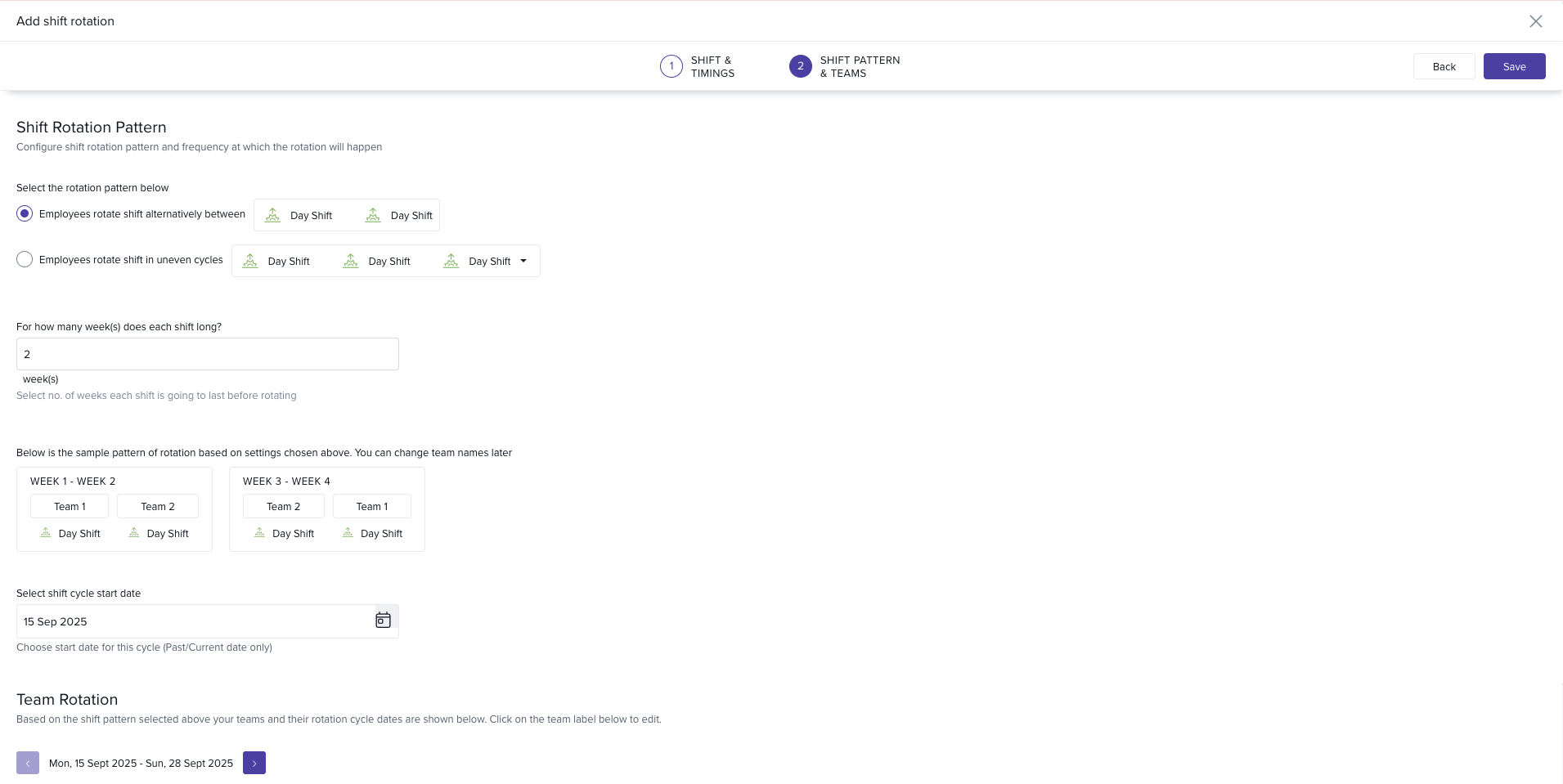 Configure Shift Pattern & Teams