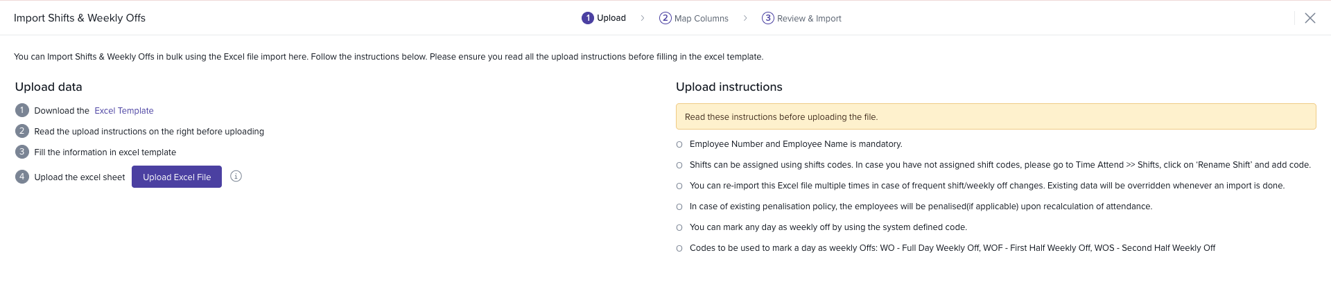 Click Import Shifts & Weekly Offs.
