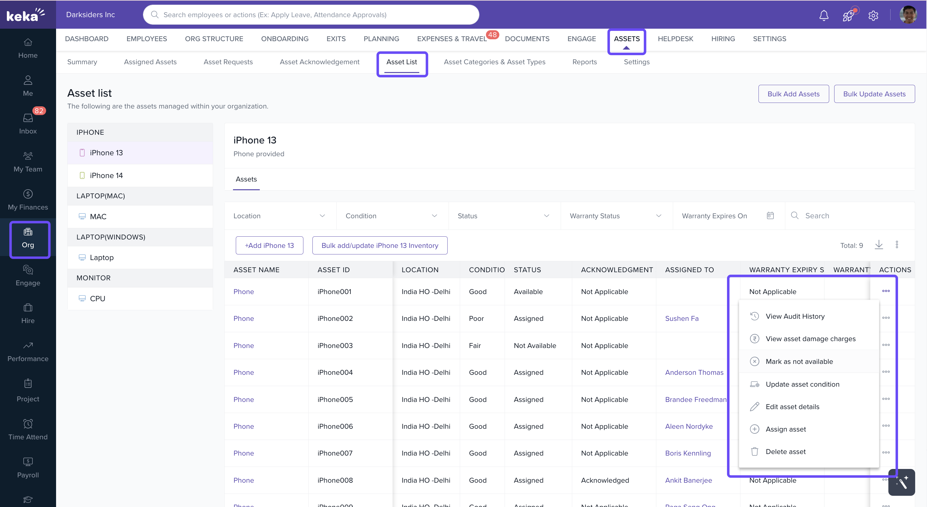 In Keka, you can mark an asset as unavailable using the Asset Unavailable Status feature. This helps classify why an asset is not available for use—whether due to repair, damage, loss, or other reasons.