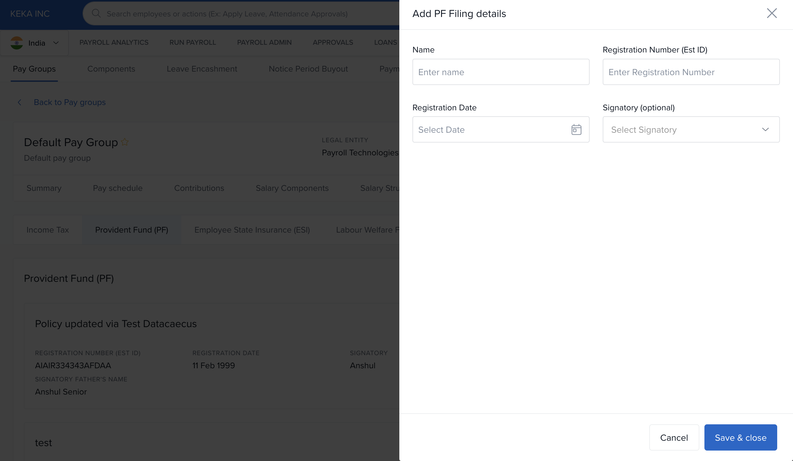 Click +Add PF Statutory Details.