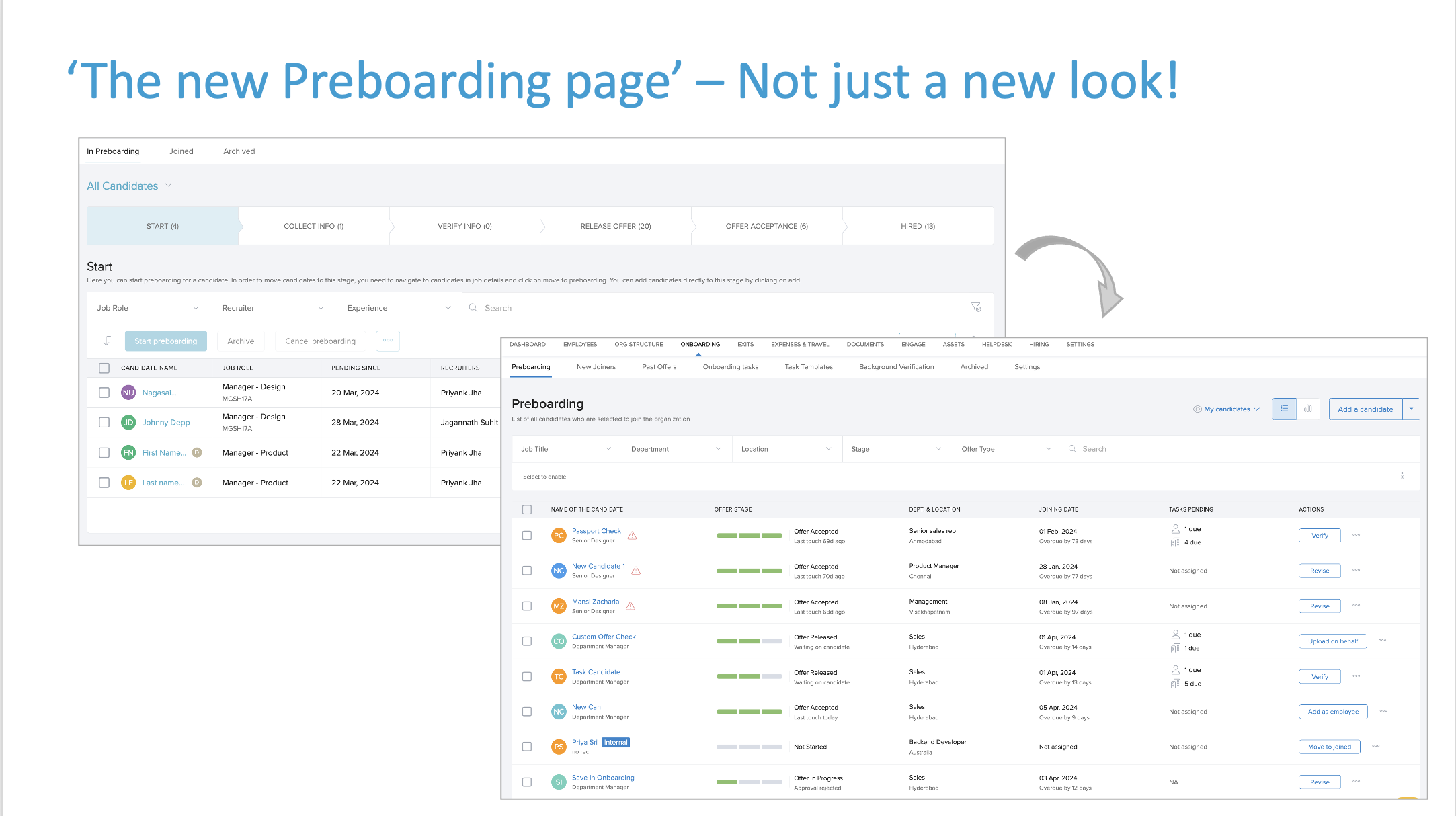 The redesigned Preboarding page offers: