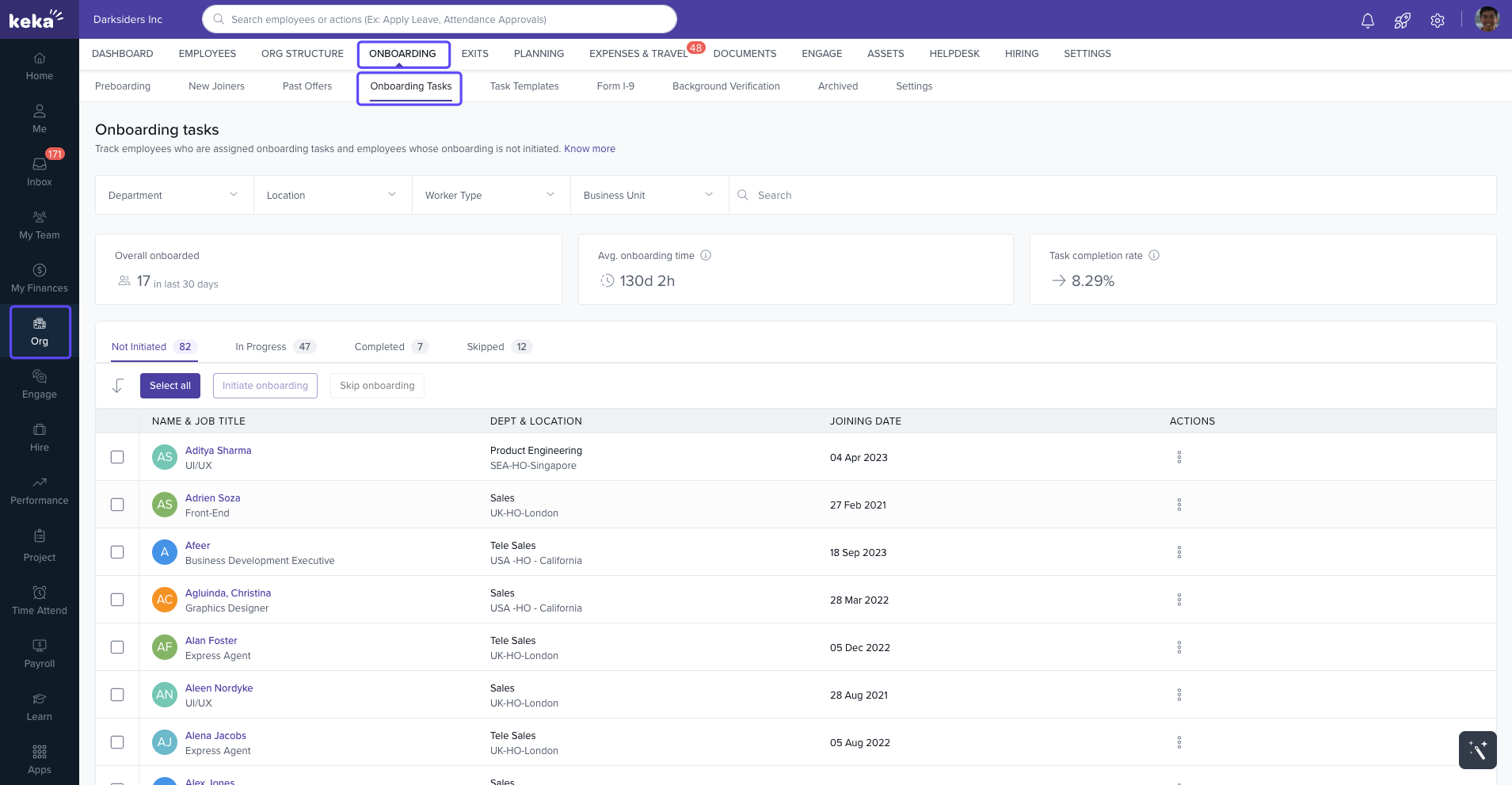 Onboarding Tasks Dashboard: This dashboard offers a candidate-centric view of progress. HR professionals can monitor each task’s status, spot delays, and step in when needed.