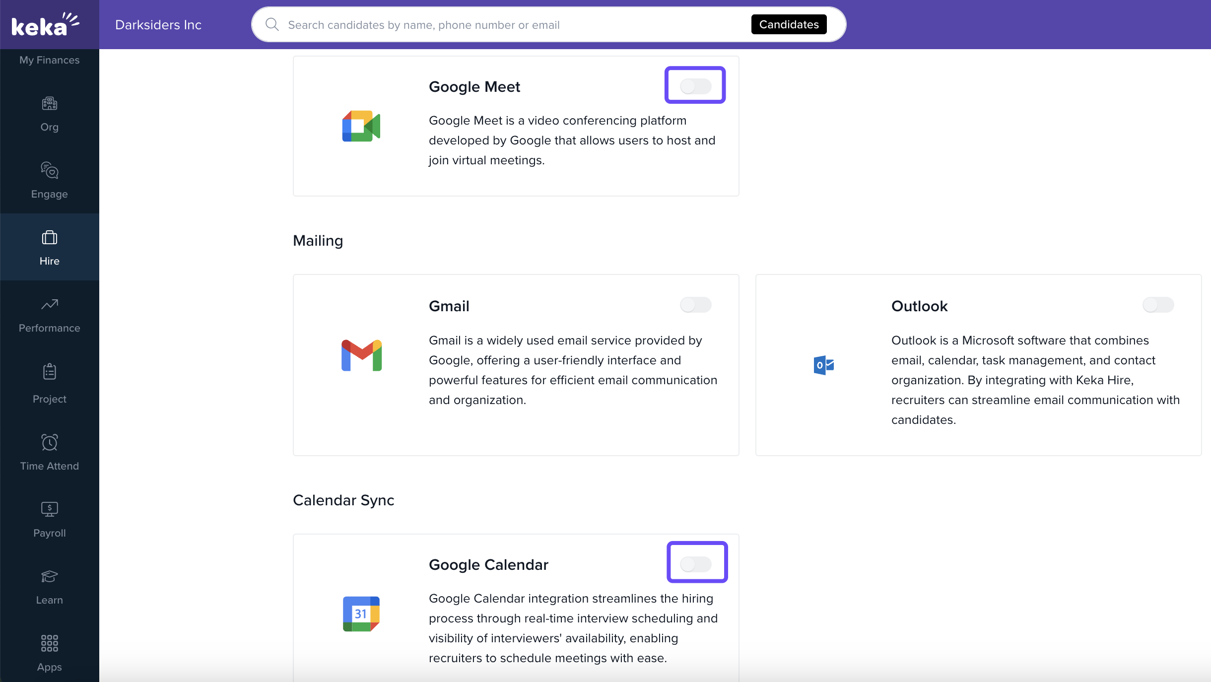 Keka Hire lets individual users connect their Google Meet and Google Calendar accounts directly from their profile. This gives recruiters and interviewers better control when scheduling and conducting interviews—without needing G Suite admin access.