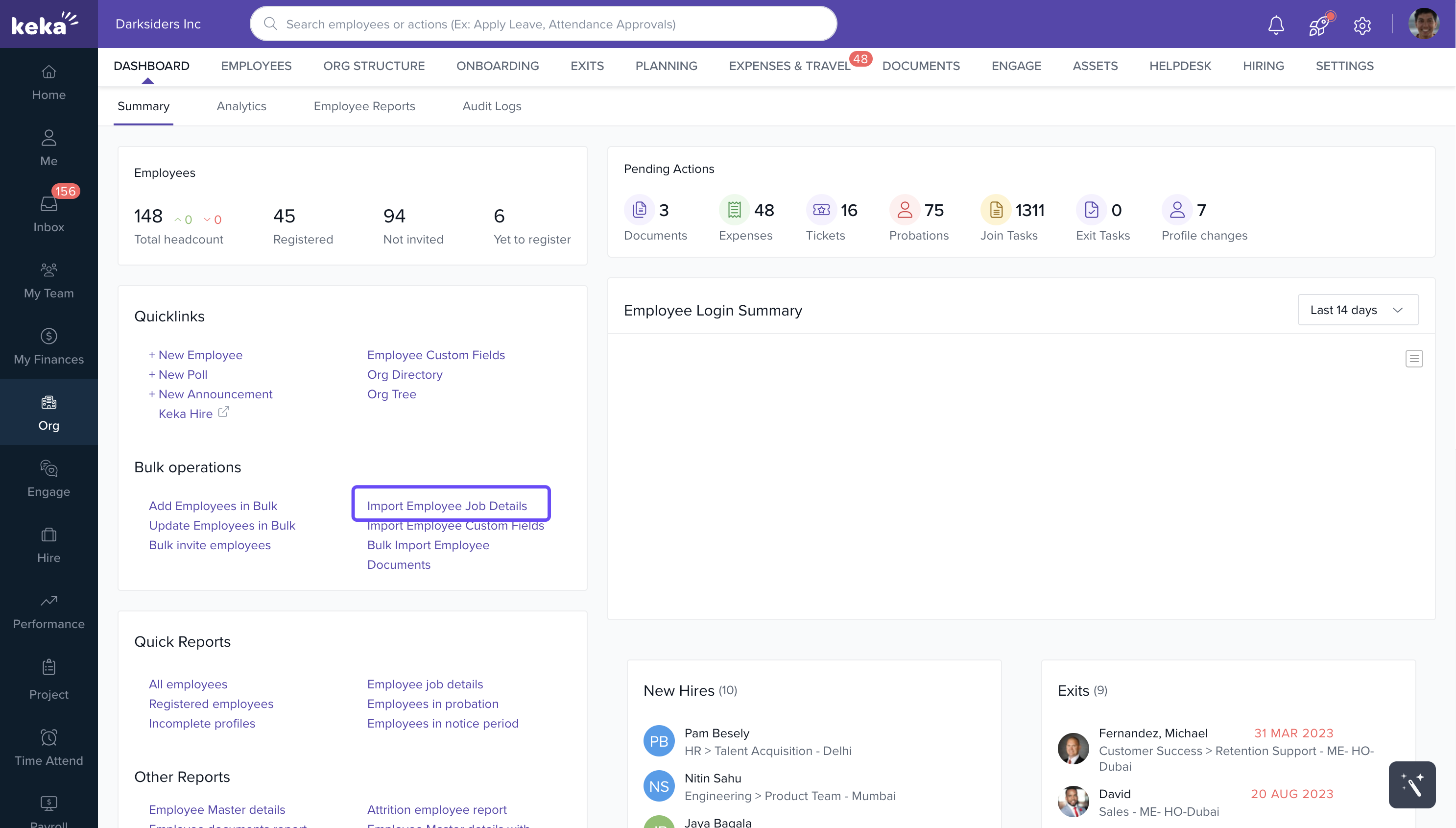 In the Summary section, locate Quicklinks and select Import Employee Job Details.