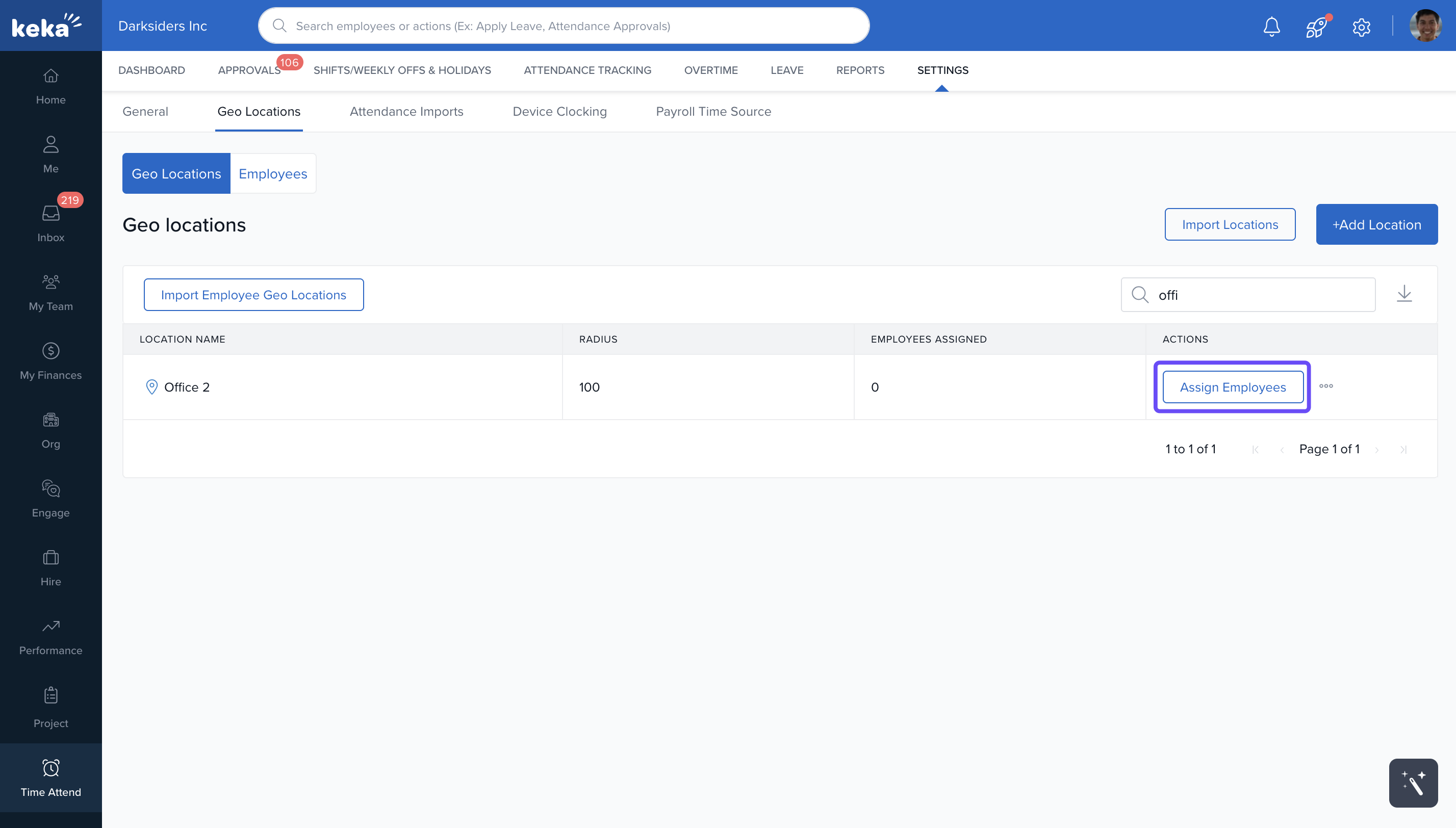 - The new Geo location will appear in the list. Find it and click Assign Employees.