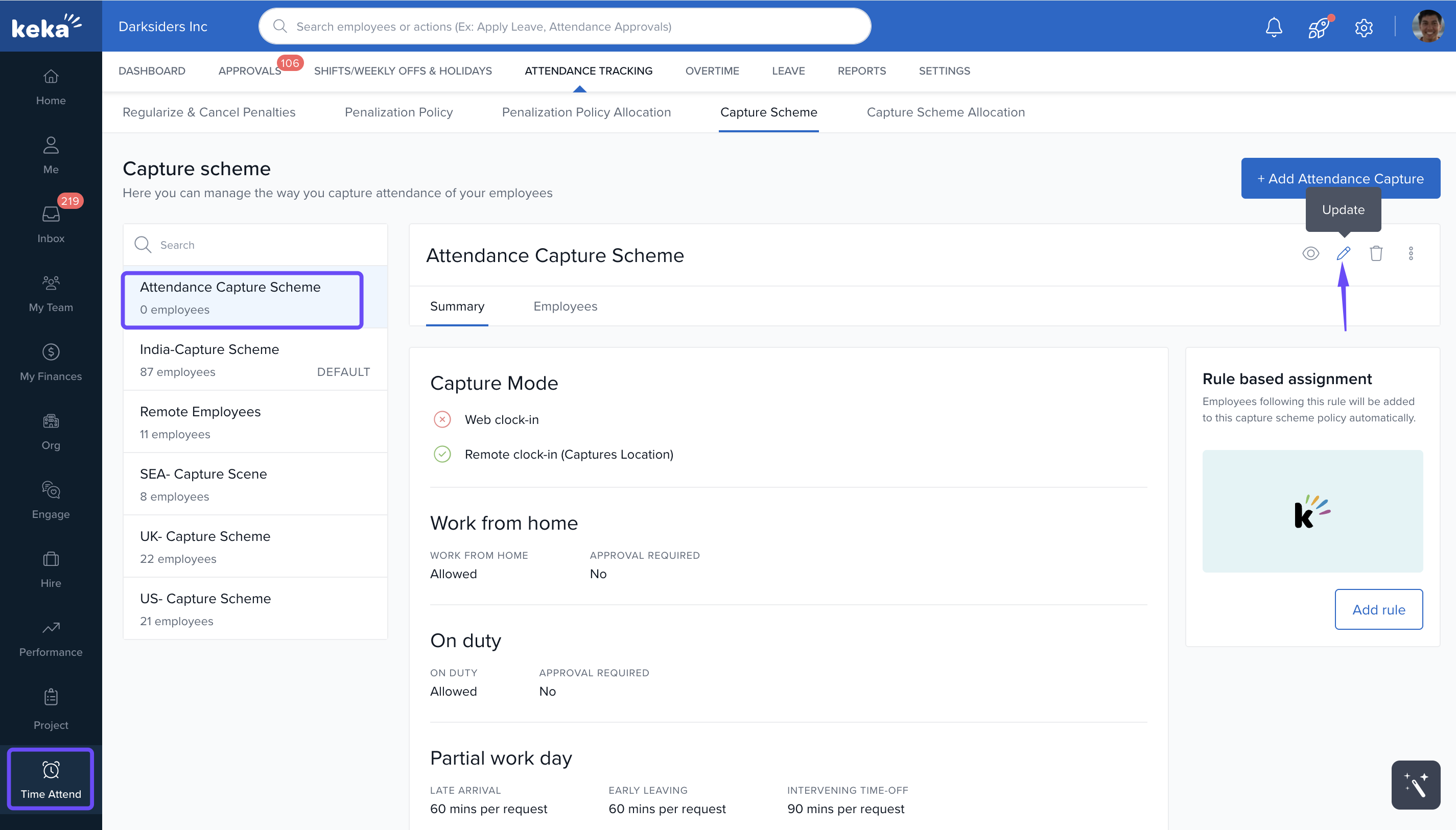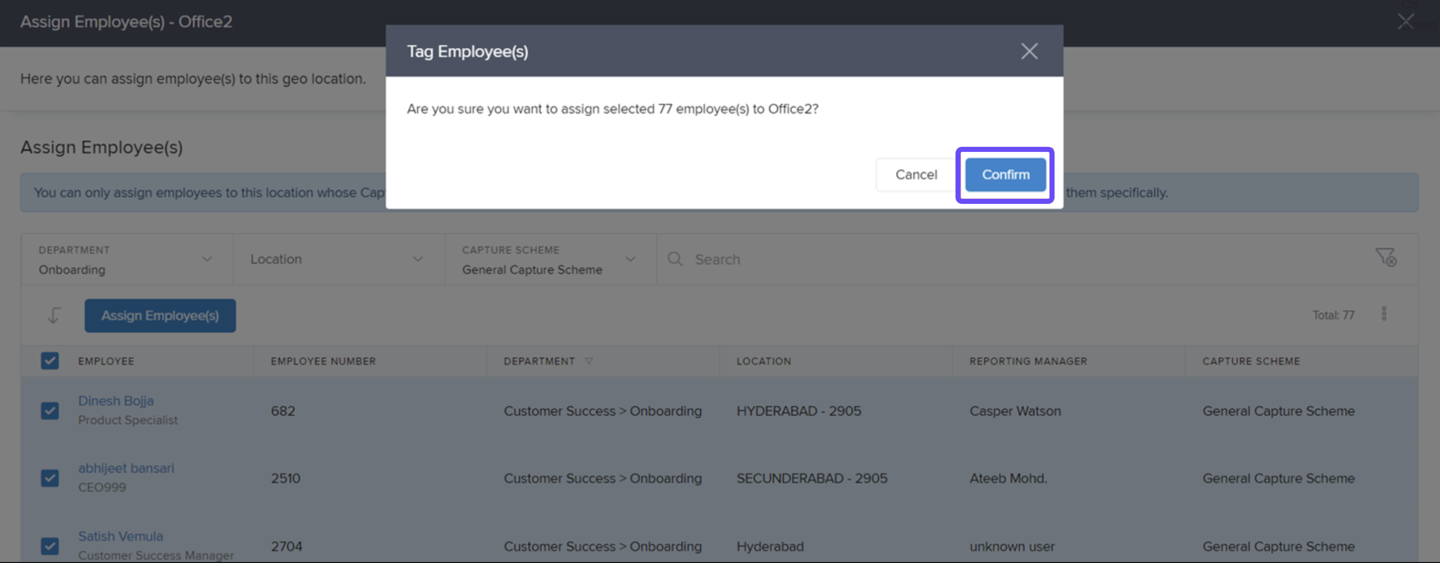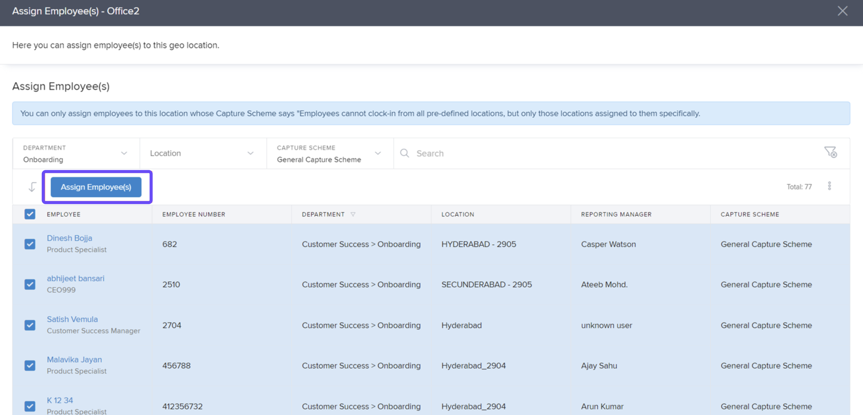 - A list of employees will appear, which can be filtered by departments, location, and capture scheme.