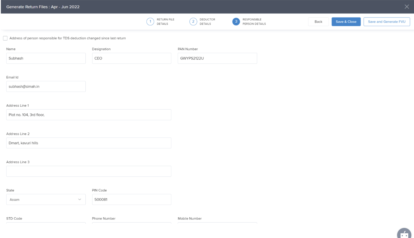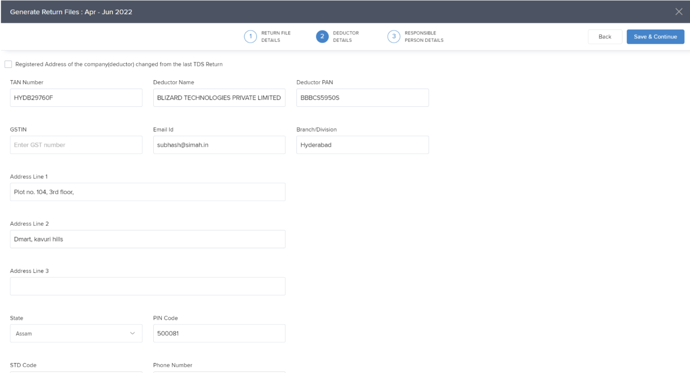 Company and Responsible Person details from the e-Filing portal (login with PAN or TAN)