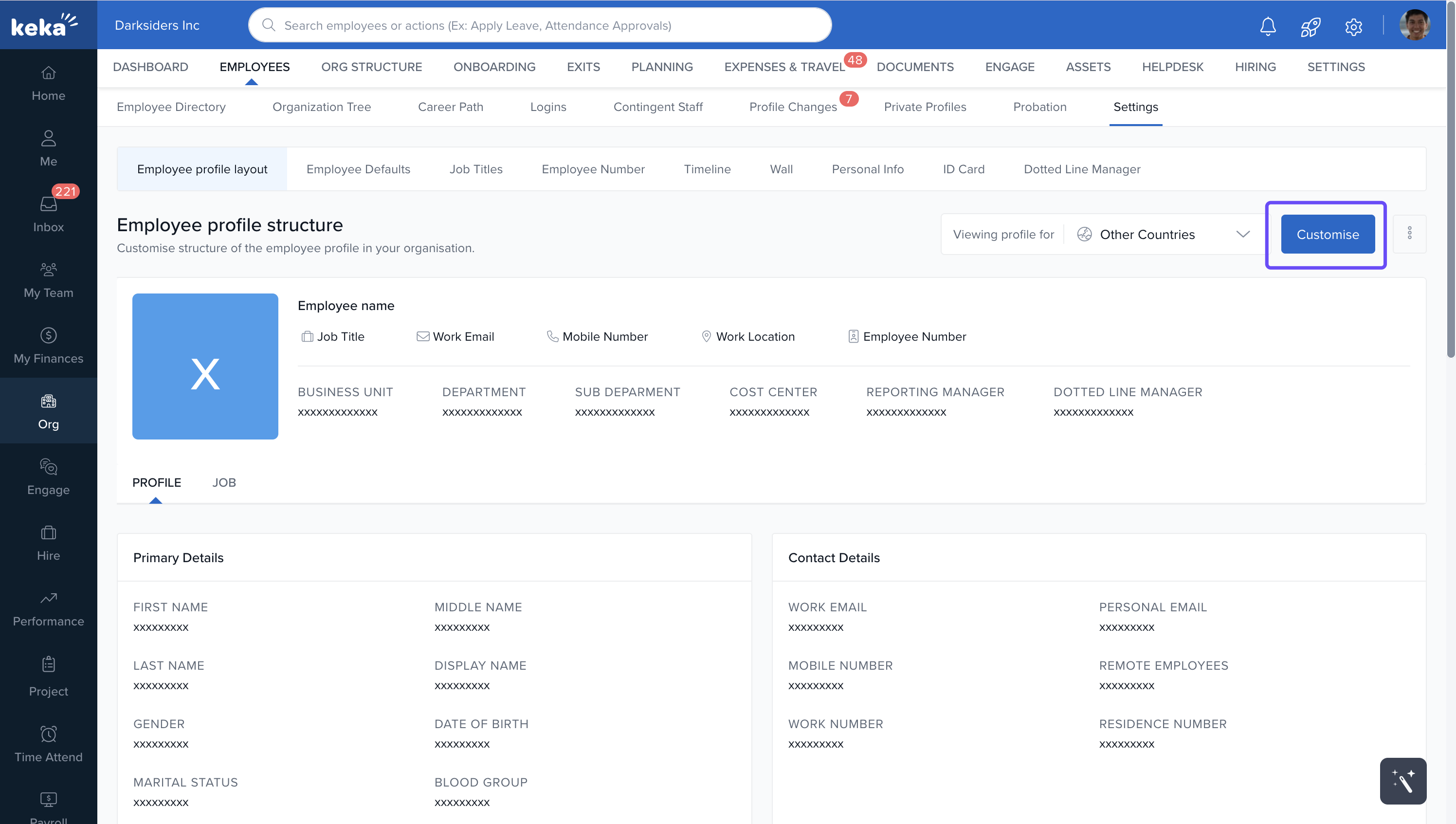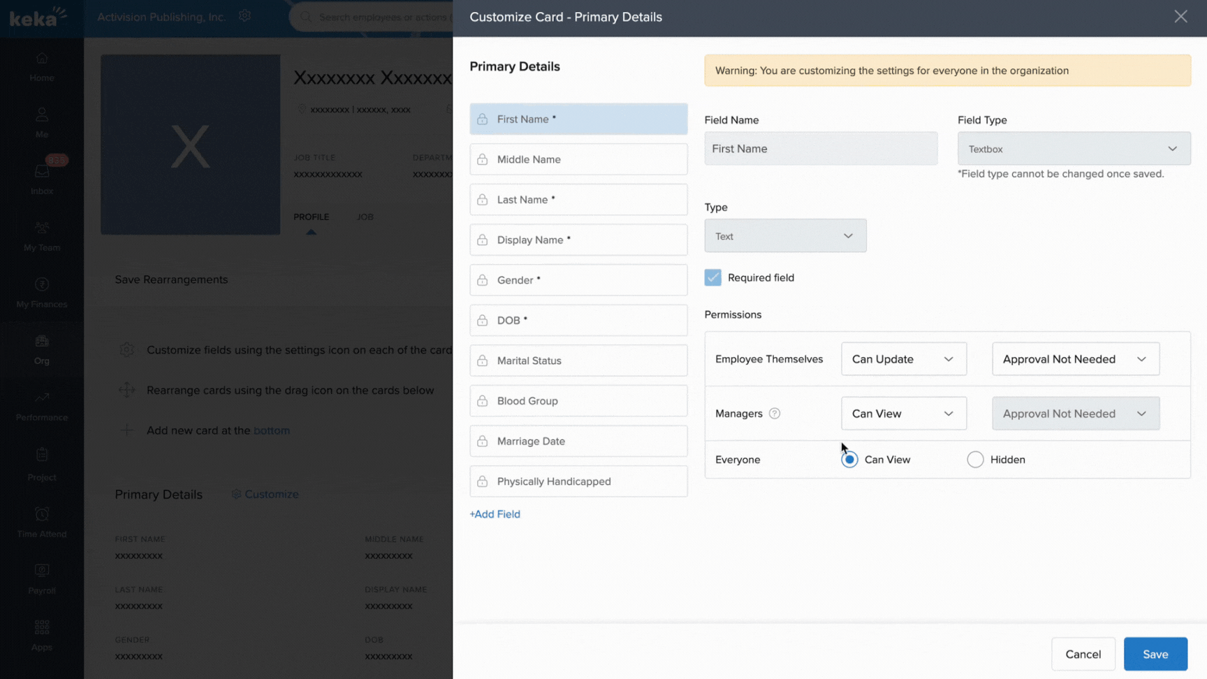 Organizations may want to restrict certain employee information to protect privacy. On Keka, admins can easily control which fields are visible to other users by updating the visibility settings of employee profile fields.