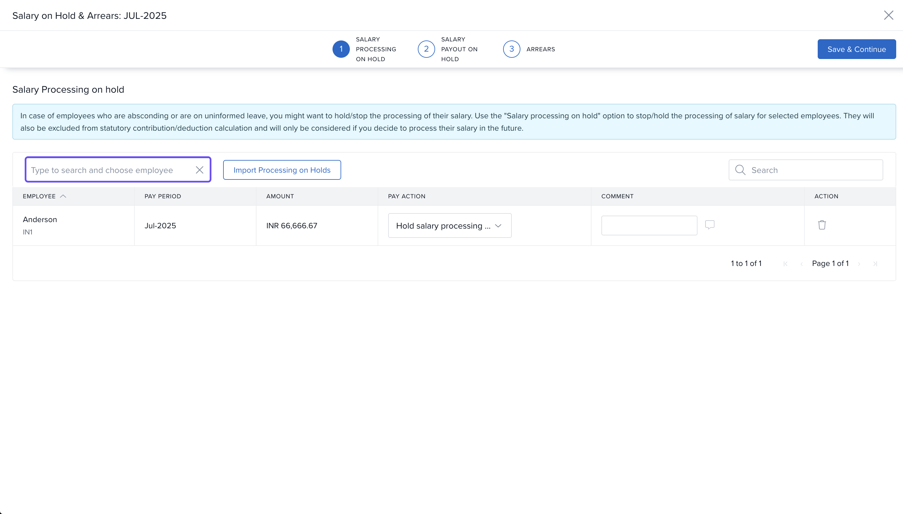 In the next window, click +Add Employee and add the name of the employee whose salary is withheld.