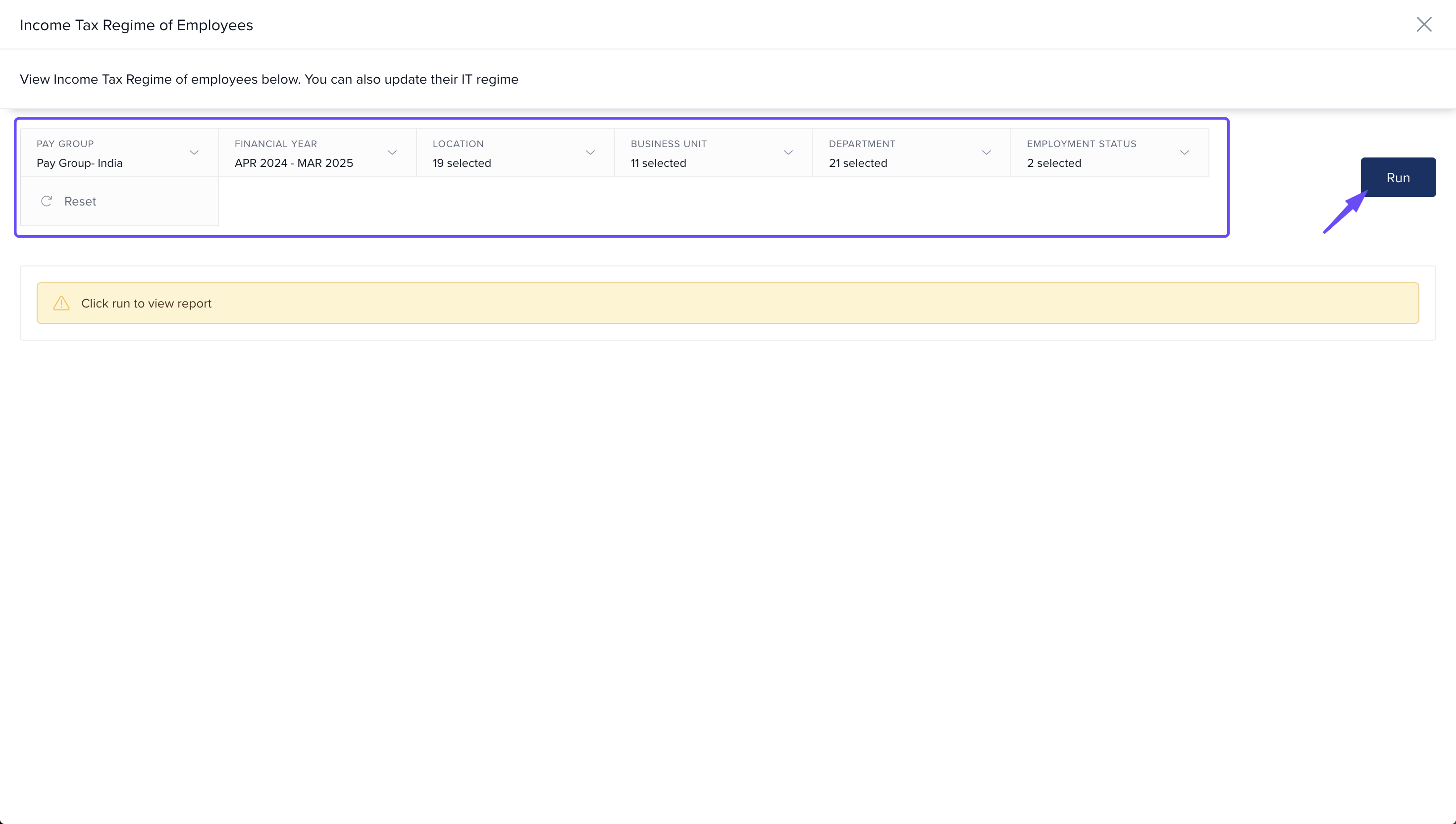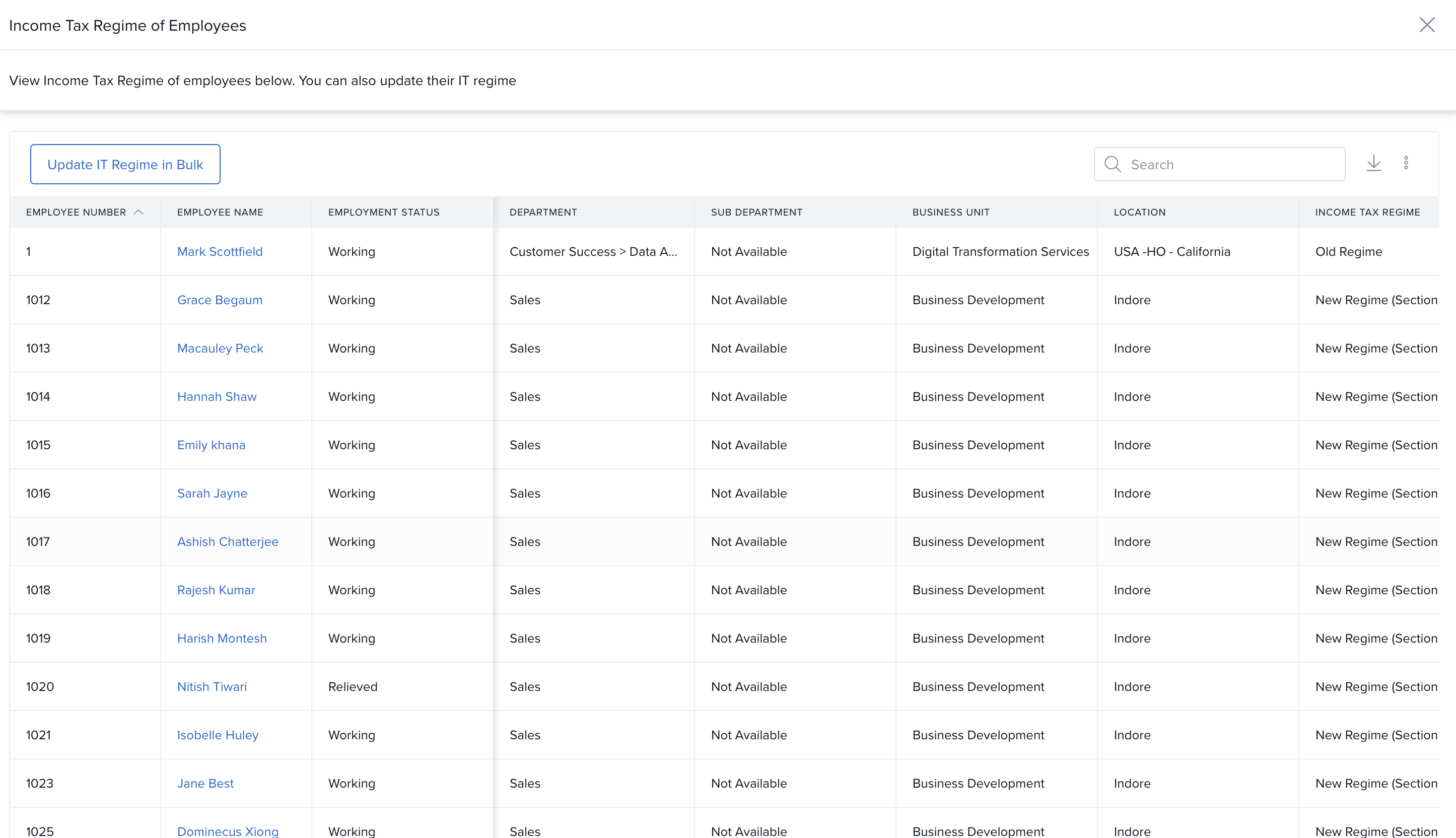 You’ll now see the Income Tax Regime of employees in the list.