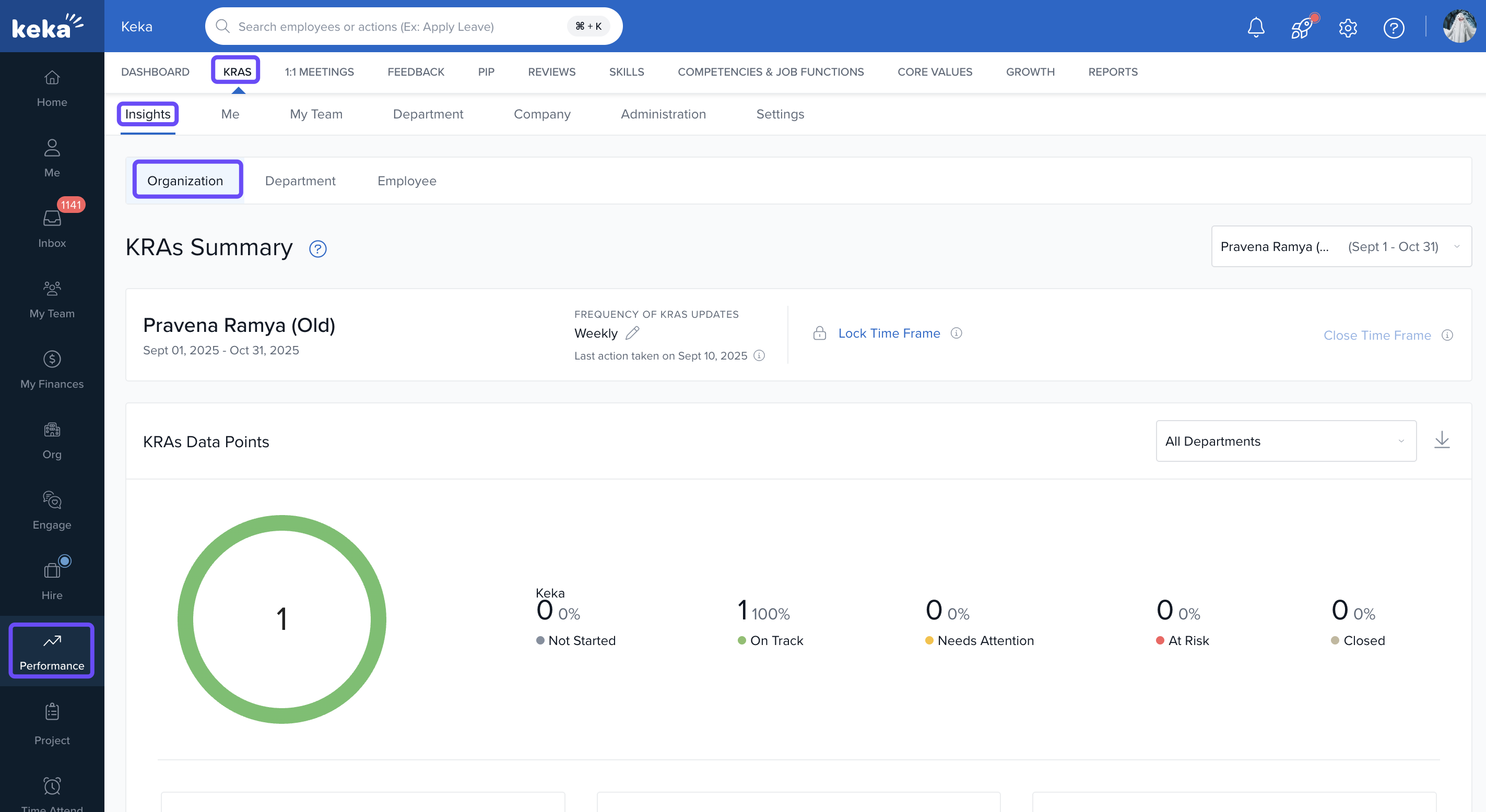 The Goals Summary page within Keka HR's Performance module is a strategic tool designed to facilitate an organisation's goal-setting process and progress tracking. This intuitive interface offers a comprehensive overview of all goals across various departments, enabling managers and employees to stay aligned and focused on their targets.