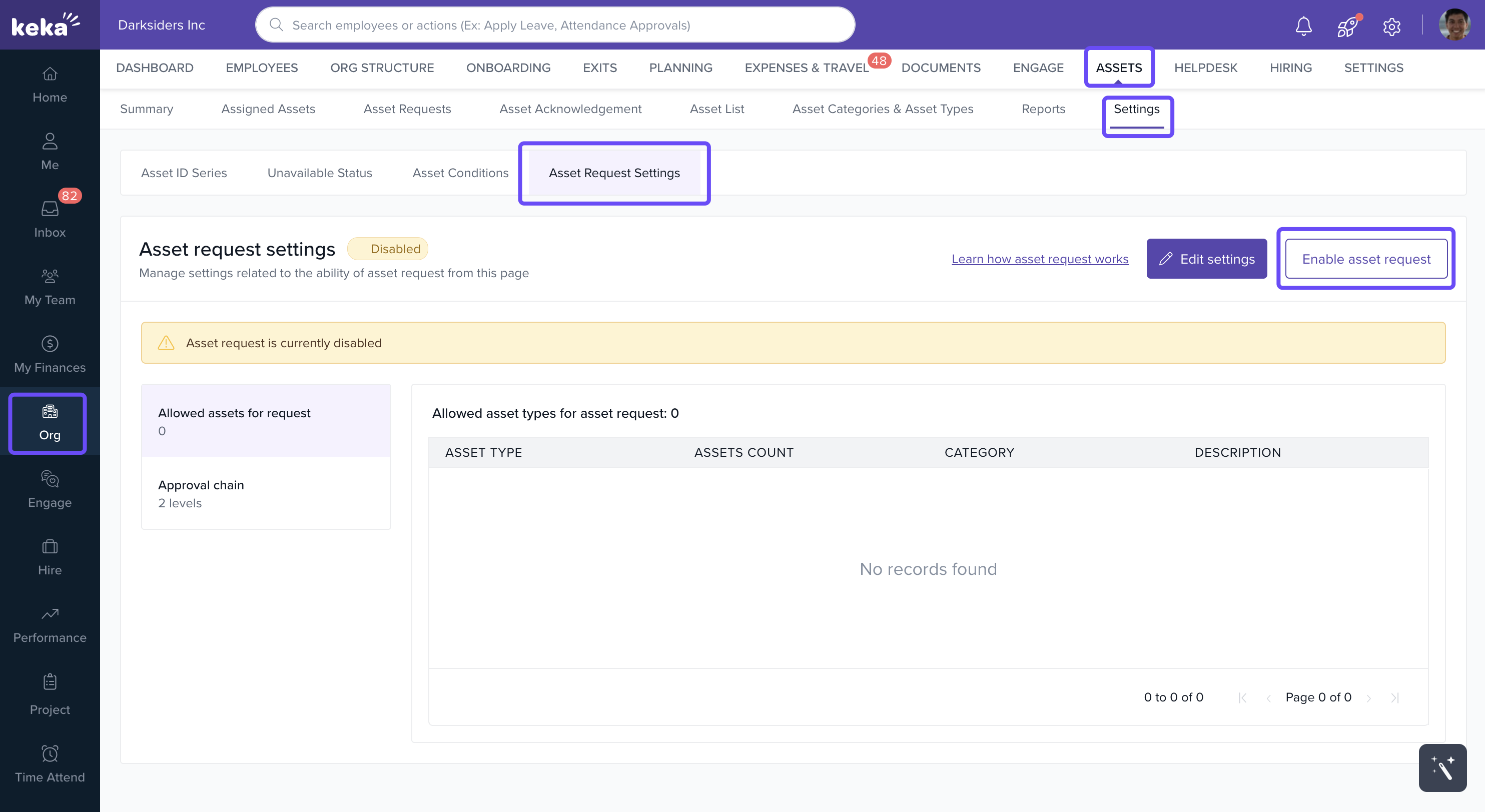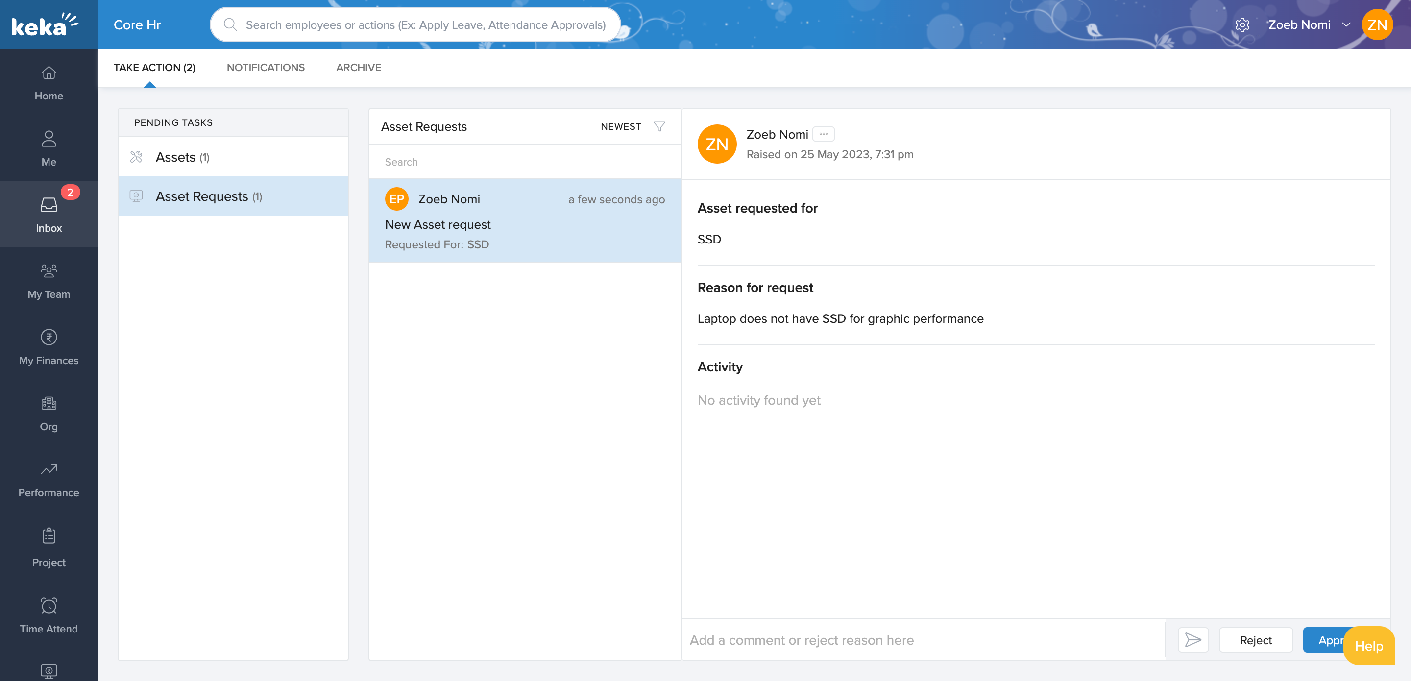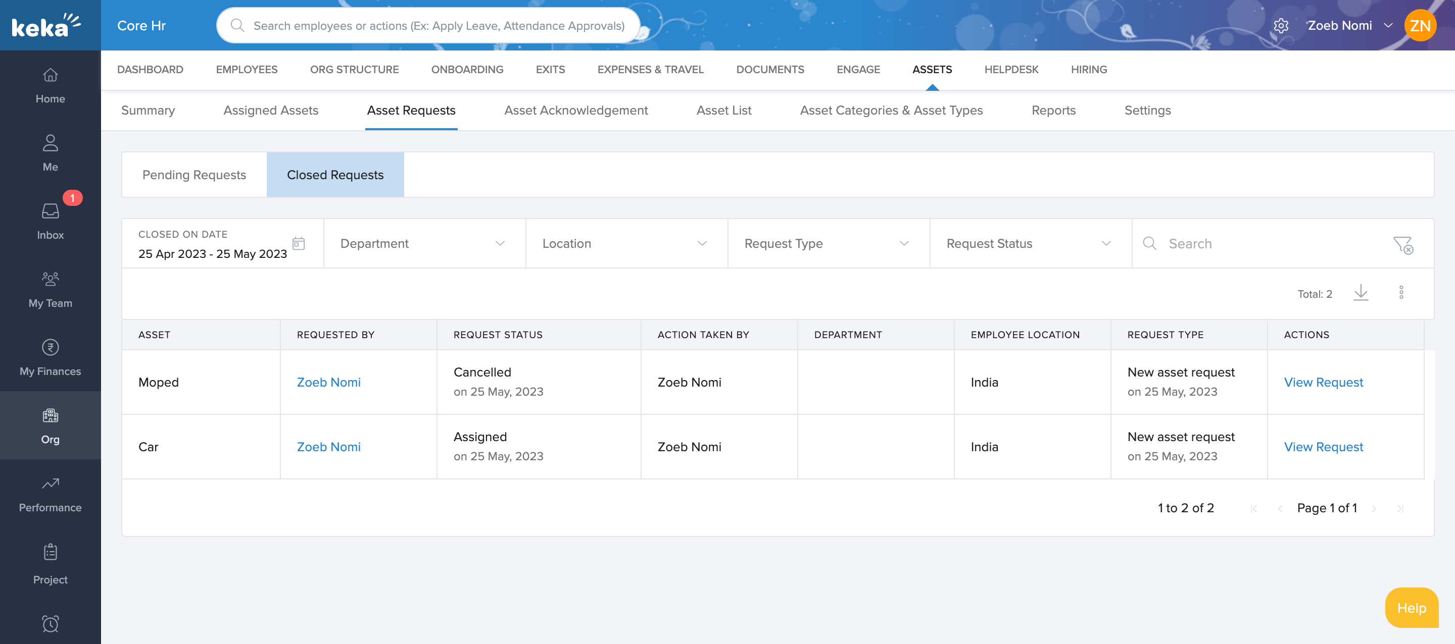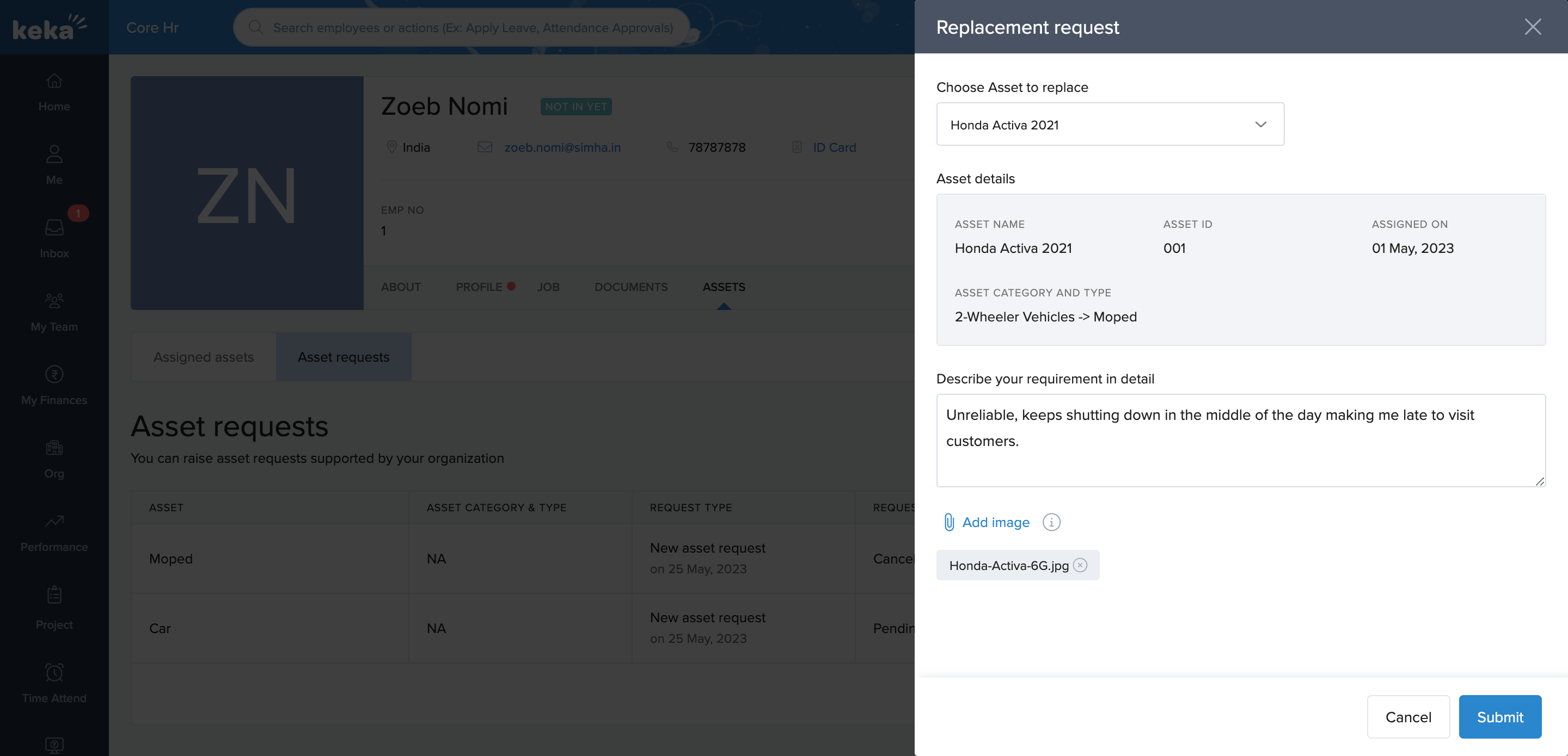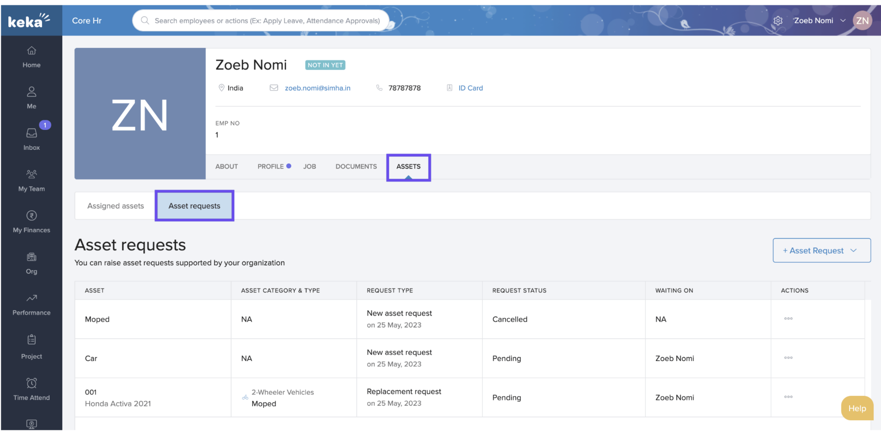 With Asset Requests in Keka, employees can easily raise new or replacement requests, while admins can efficiently track, approve, and assign resources—ensuring smooth and transparent asset allocation.