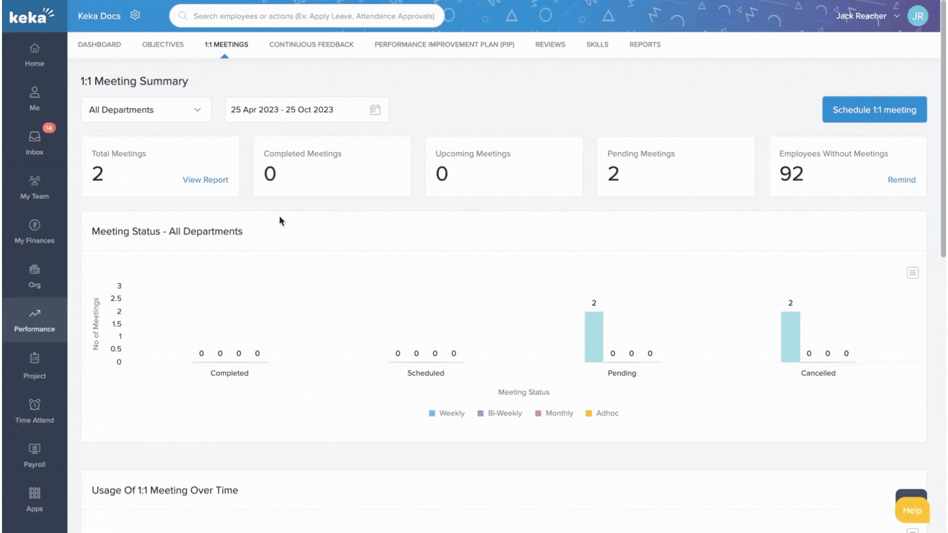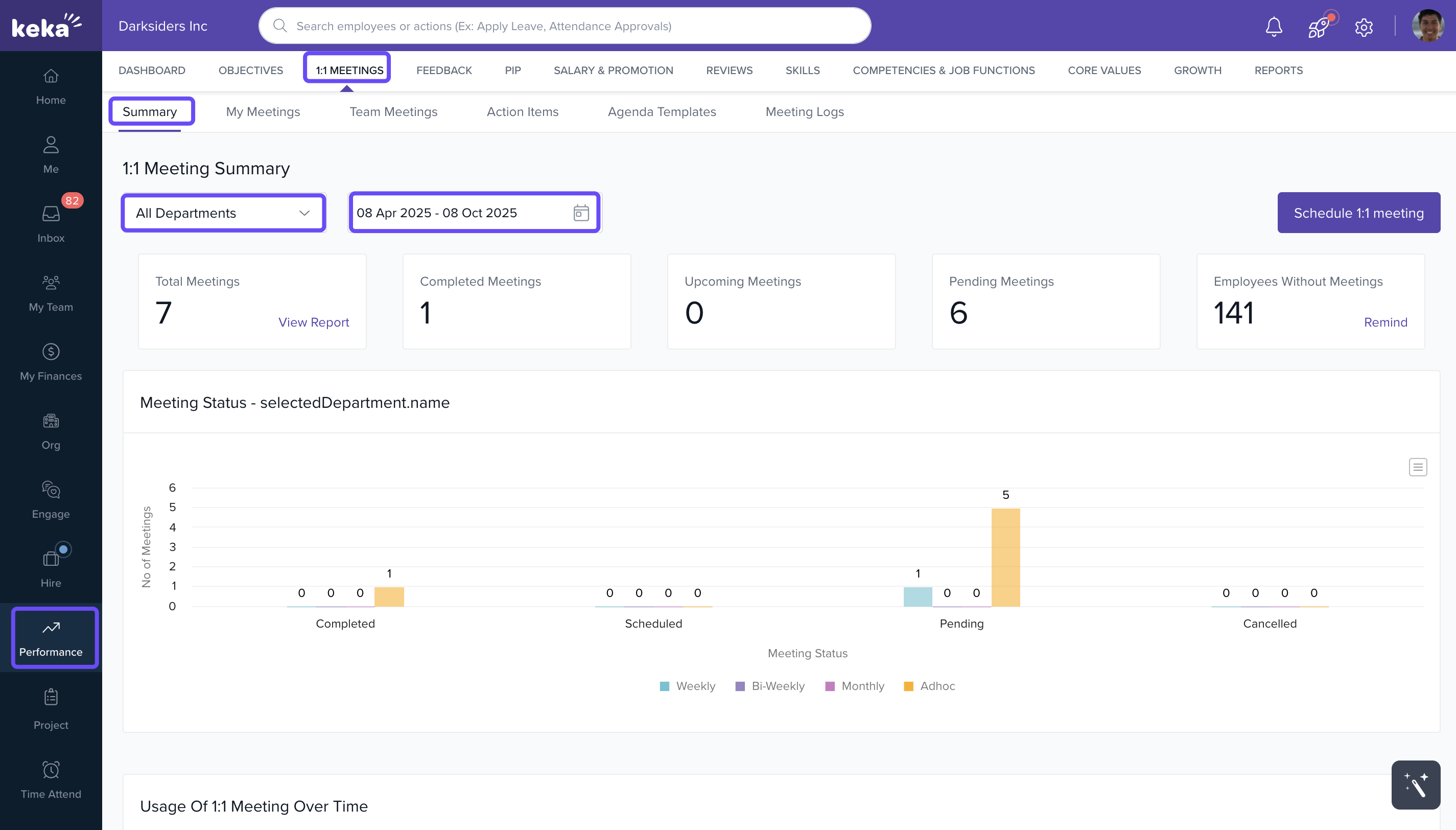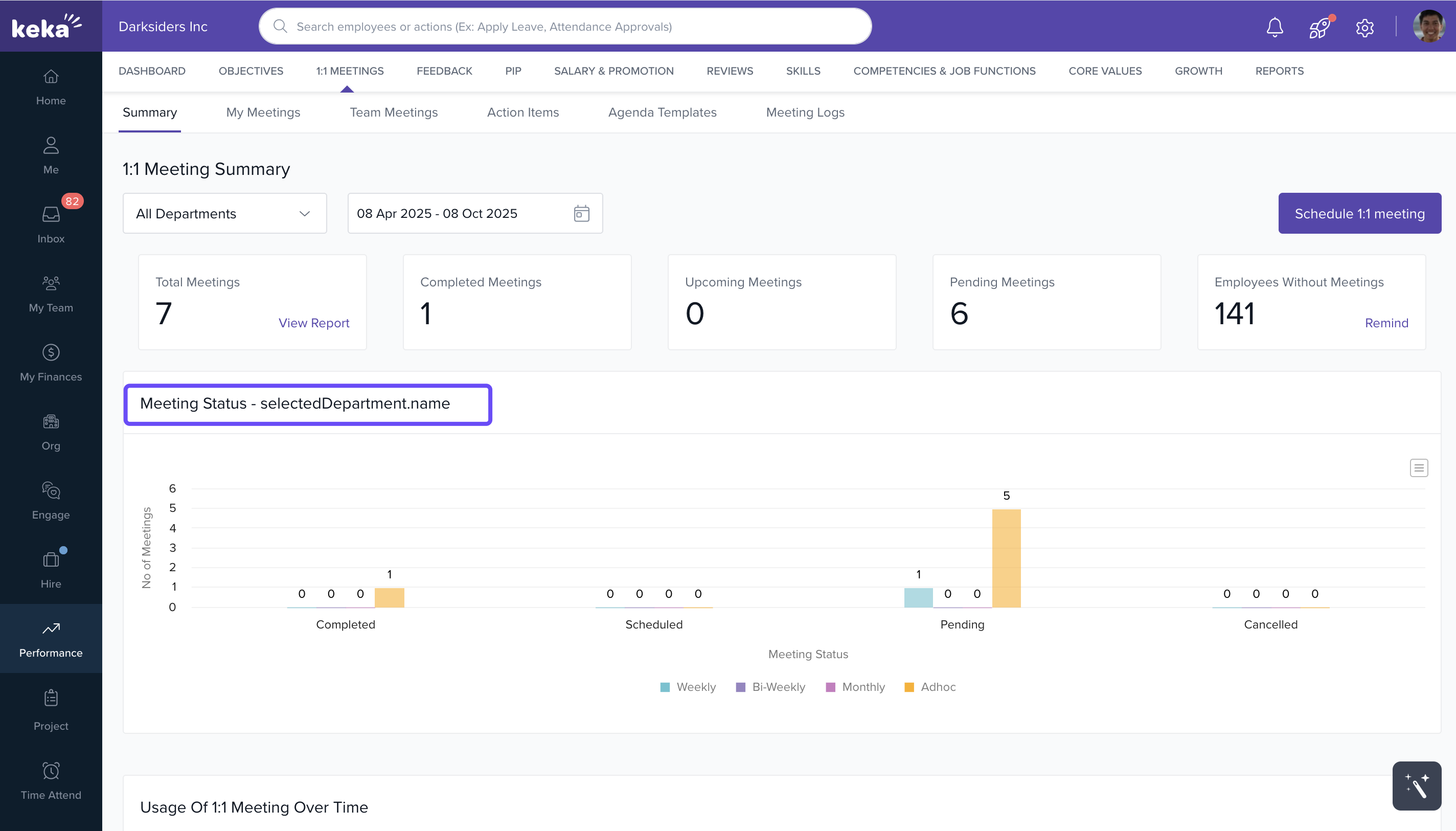 - Navigate to Performance and click on 1:1 Meetings.