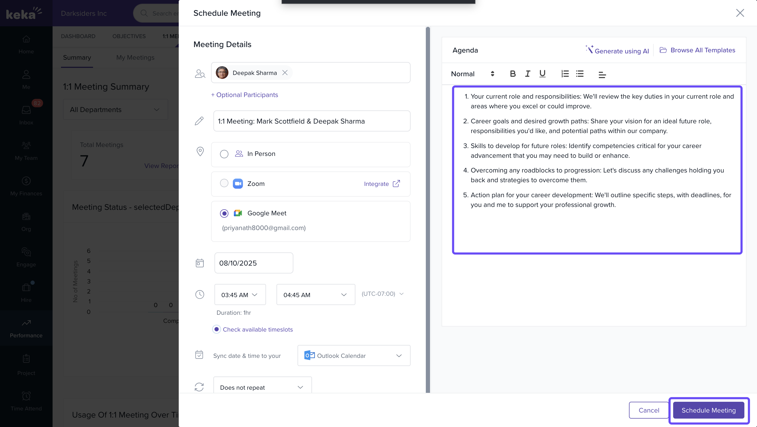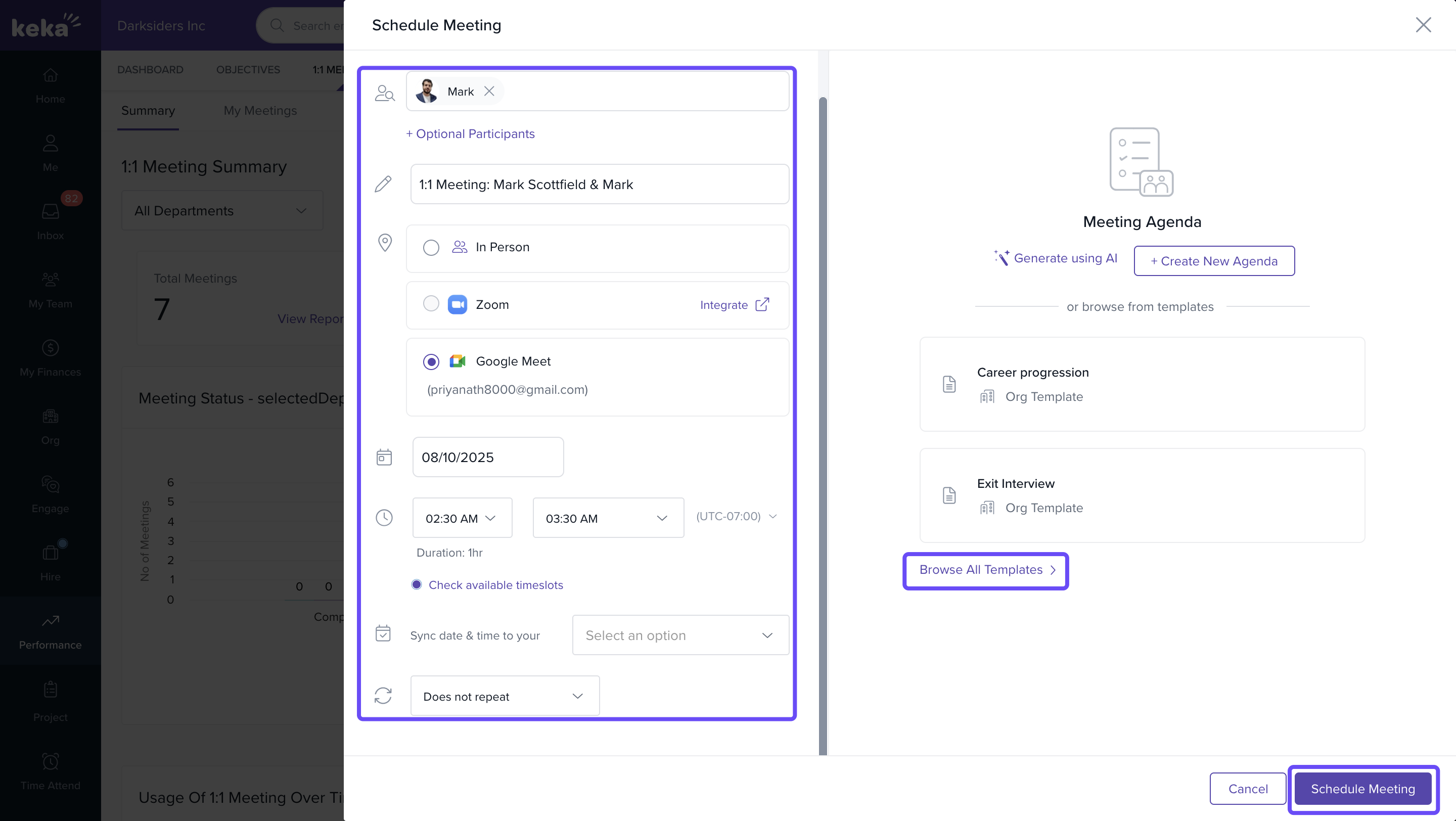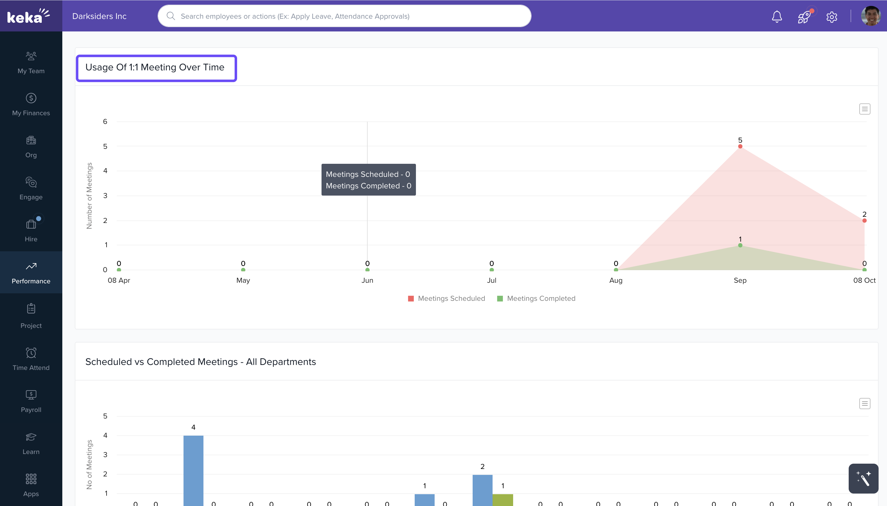 - Go to Performance and click on 1:1 Meetings.