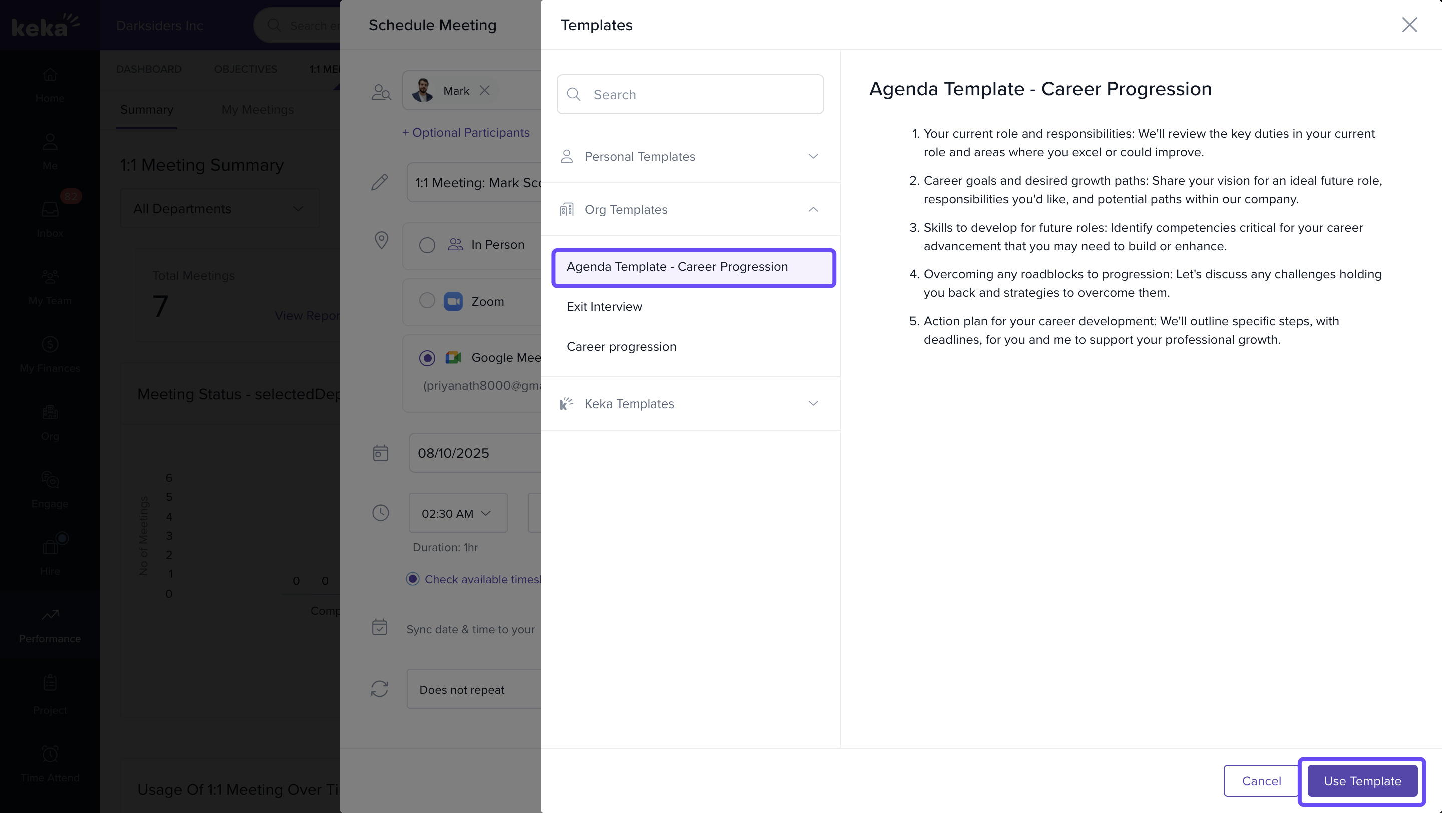 You can reuse these customised templates for future 1:1s, ensuring consistency in conversations.