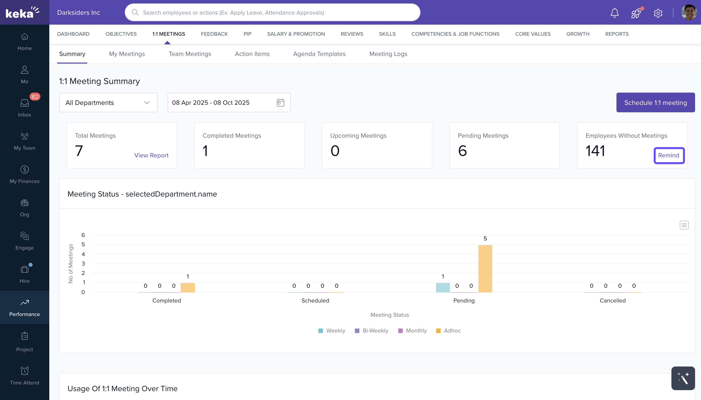 With Keka’s 1:1 Meetings module, you can track meeting frequency, assess engagement levels across departments, and ensure every employee has regular touch points with their manager.
