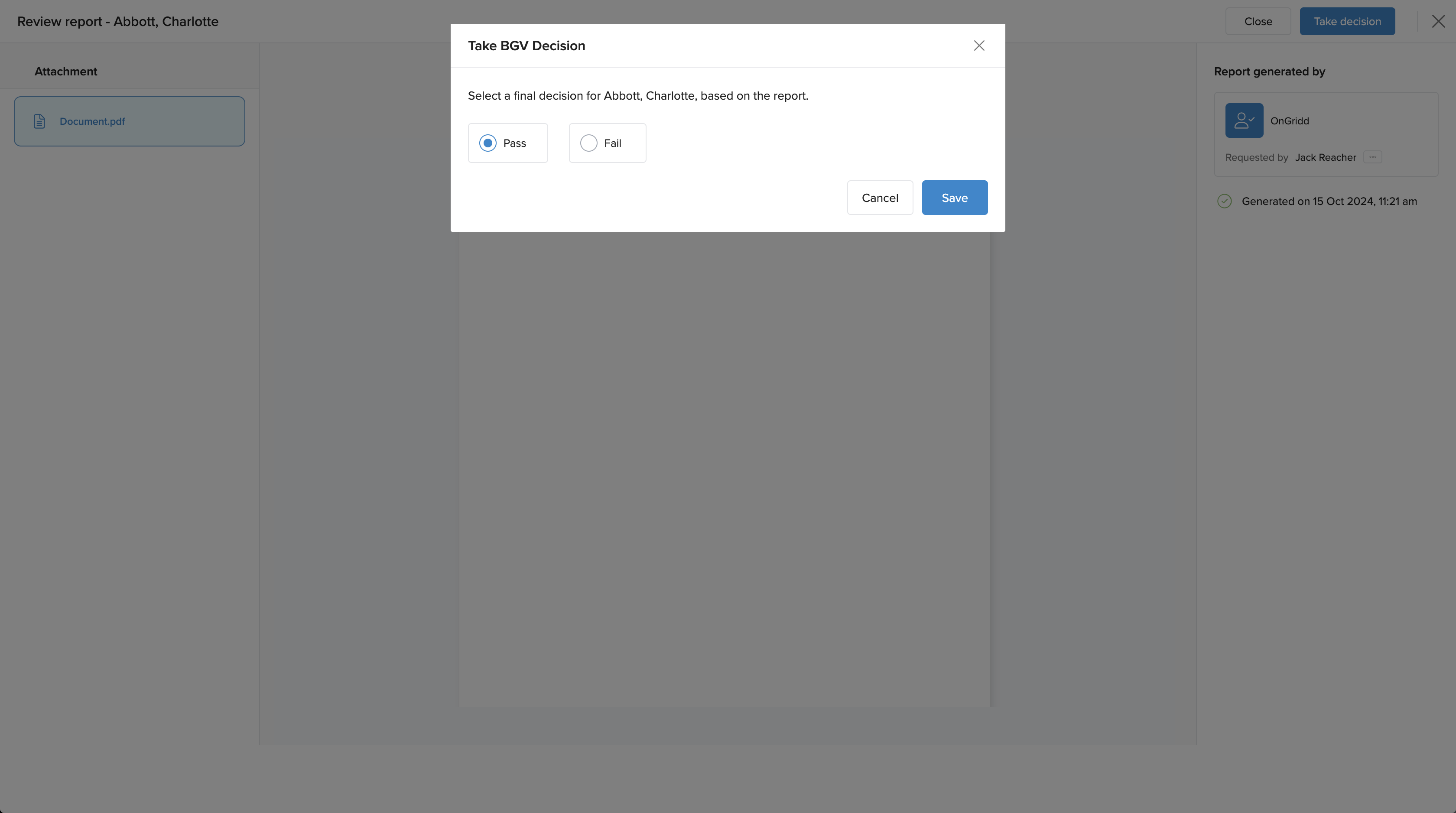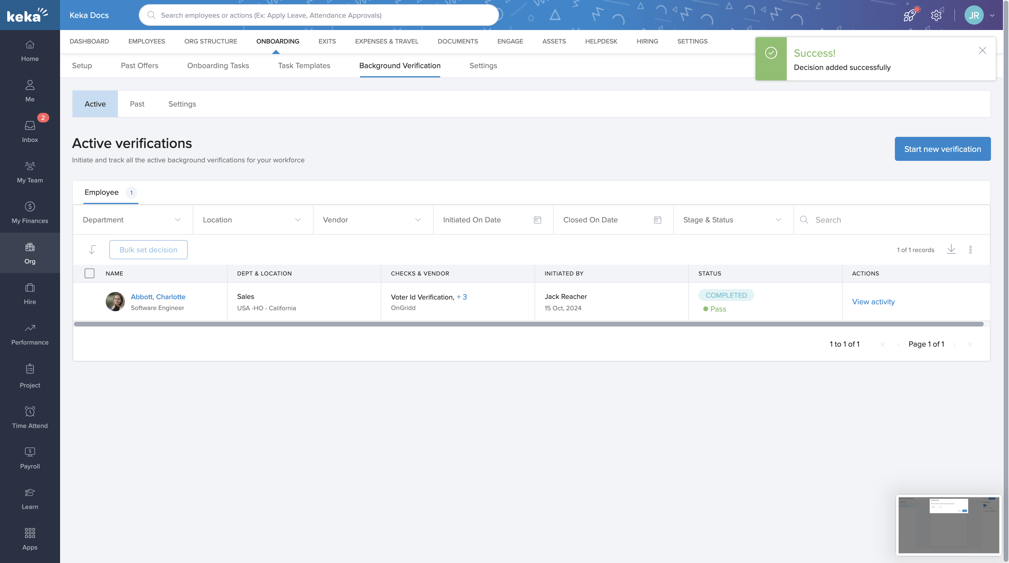 - Select the employee or candidate for verification.