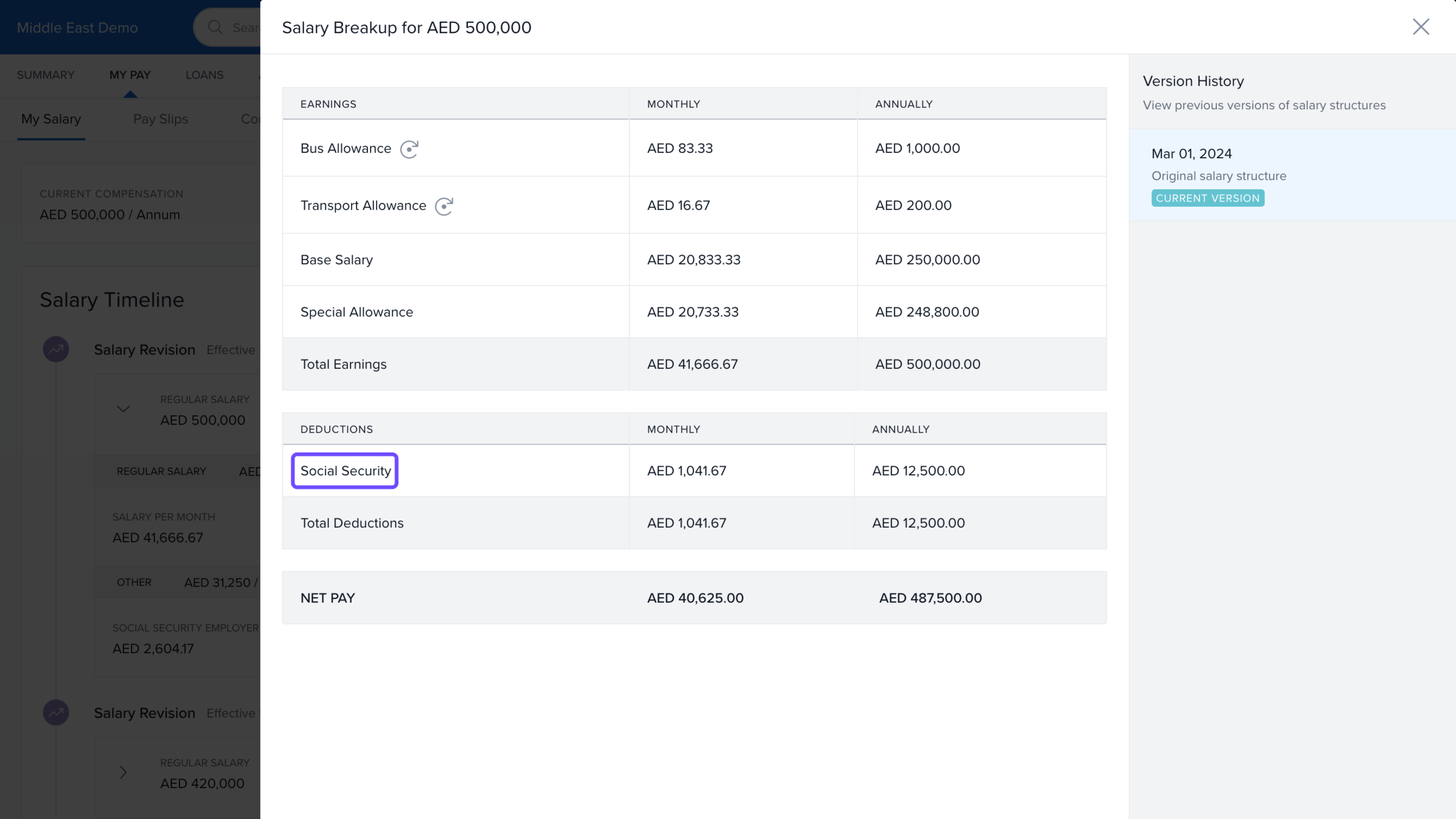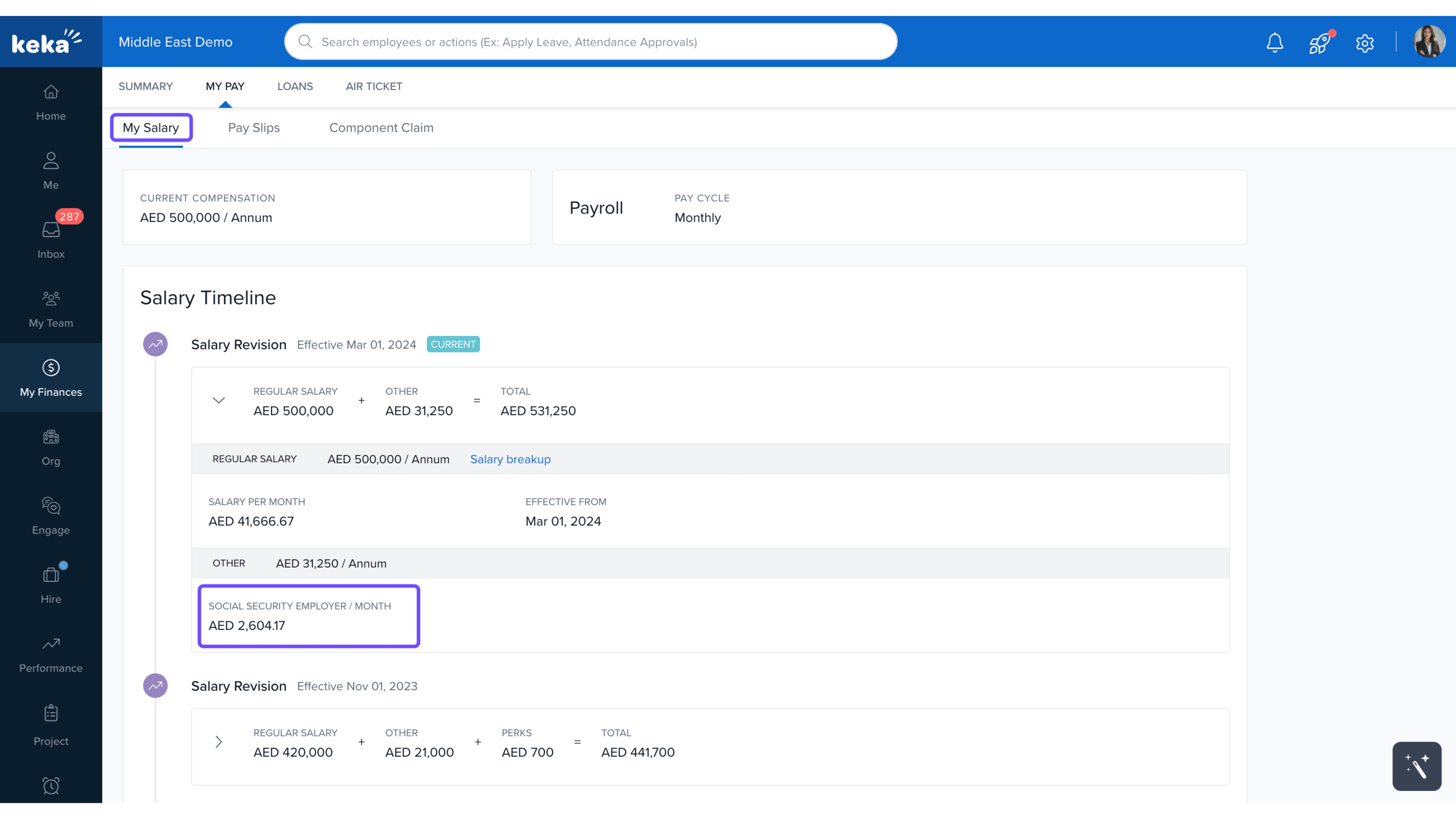 If your organization operates in the Gulf Cooperation Council (GCC) region, it's essential to stay compliant with local regulations on social insurance. Keka automates the calculation and tracking of social insurance contributions for eligible employees in GCC countries.