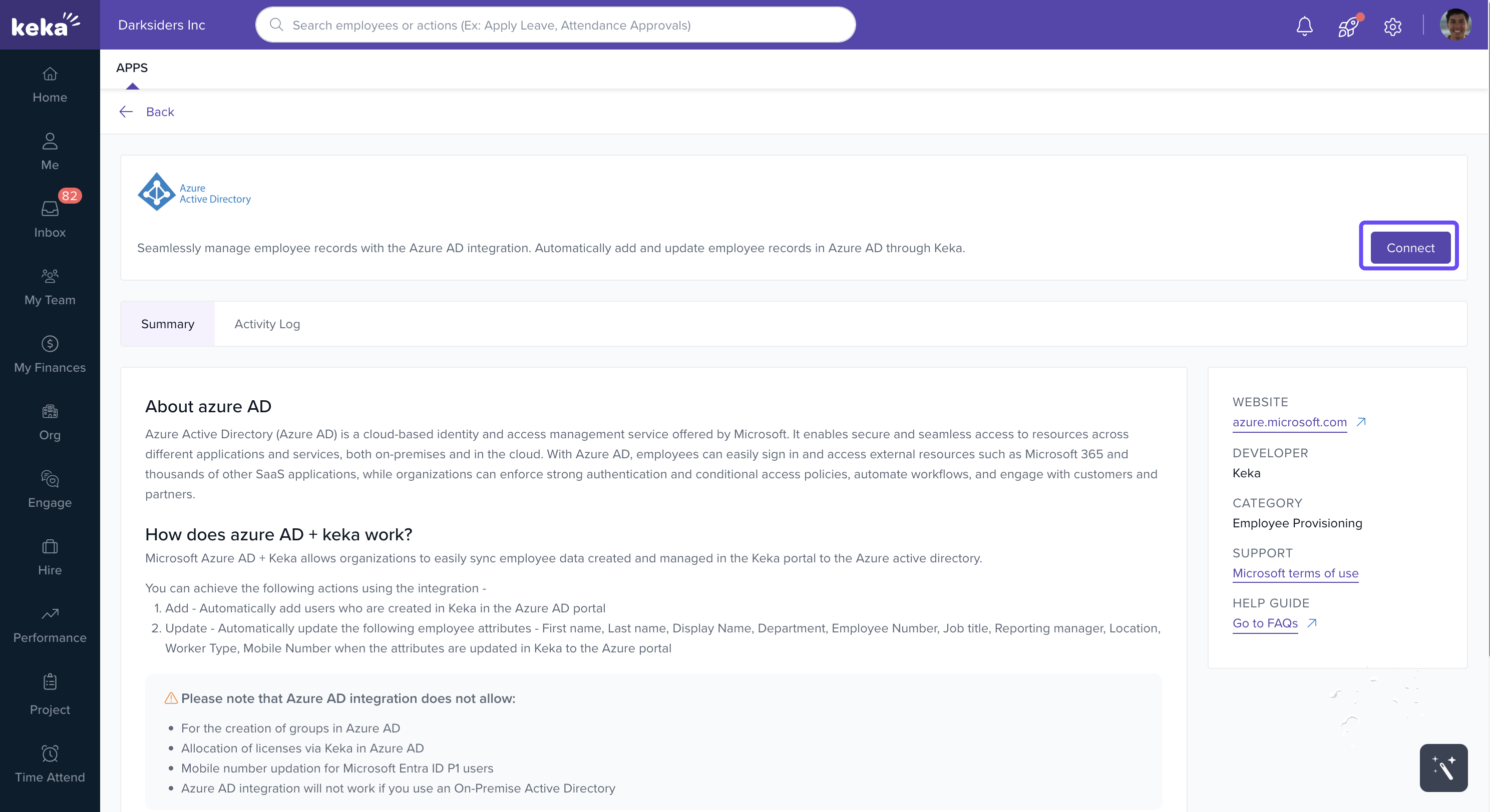 This guide walks you through the steps to set up Azure AD integration in Keka.