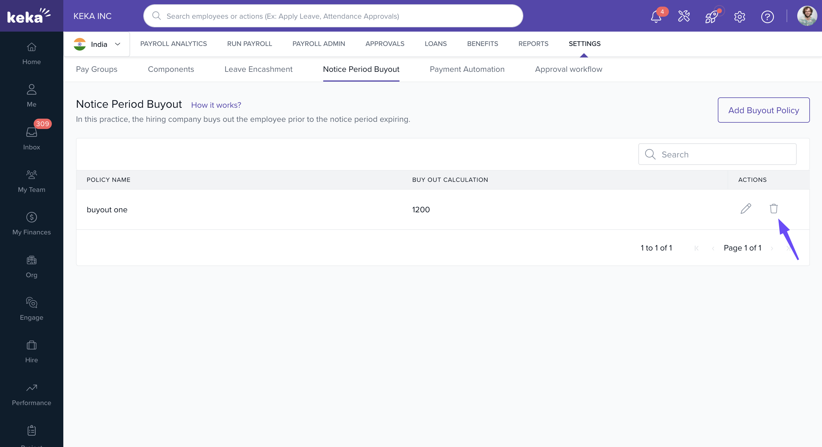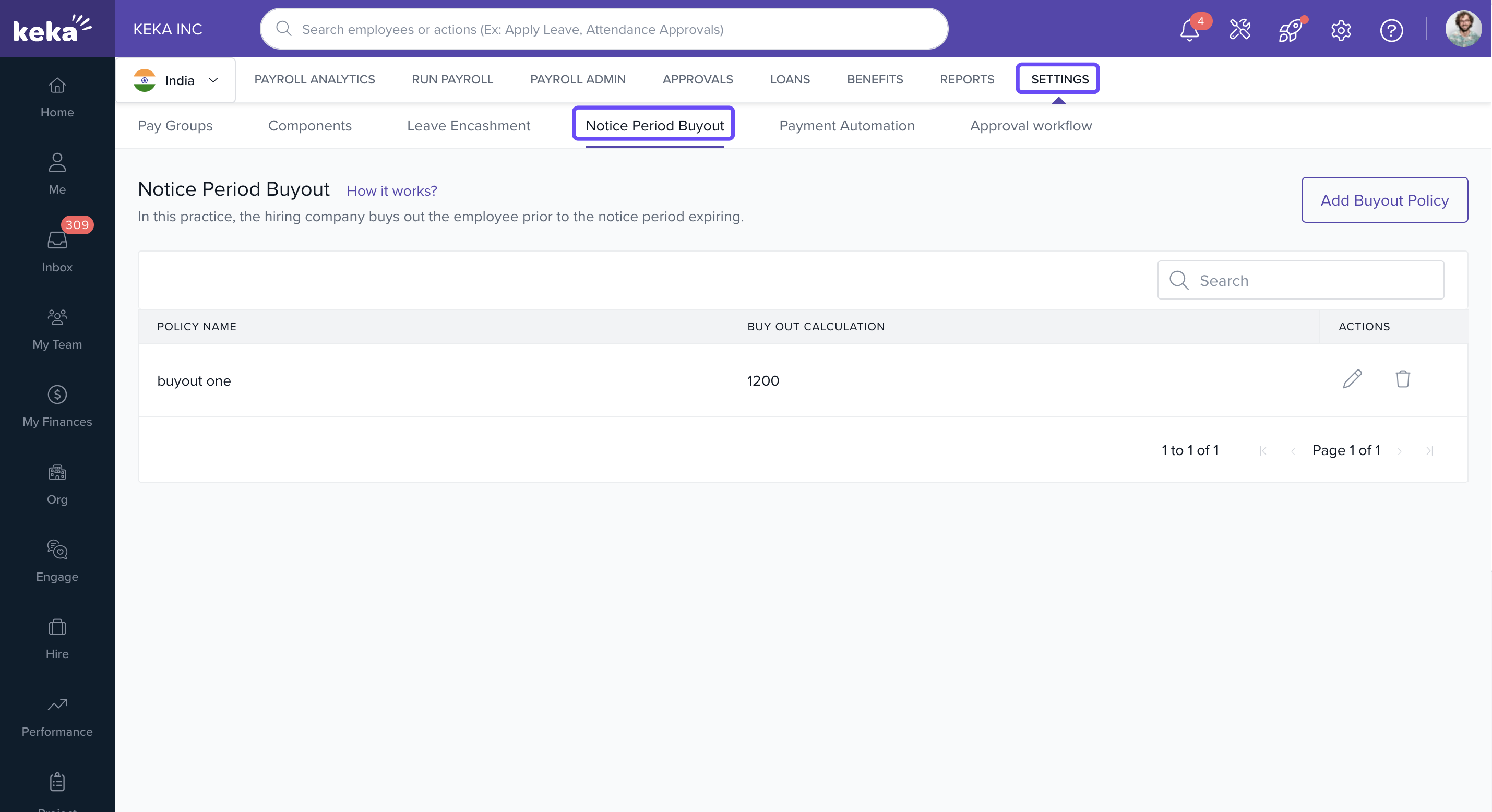 Notice period buyouts allow a new employer—or the employee themselves—to pay for the remaining notice period so the employee can join sooner. If your organization wants to support this, you can create and manage buyout policies in Keka.