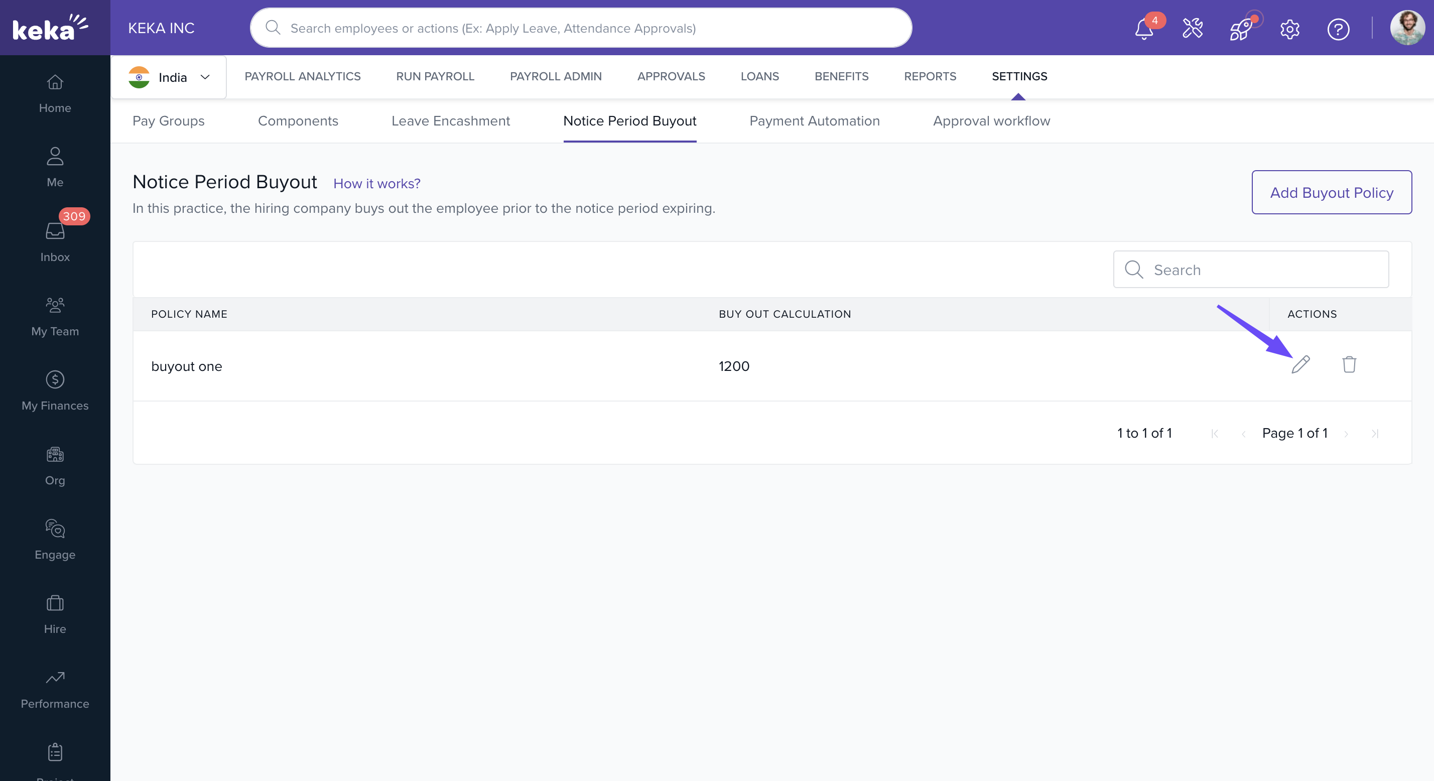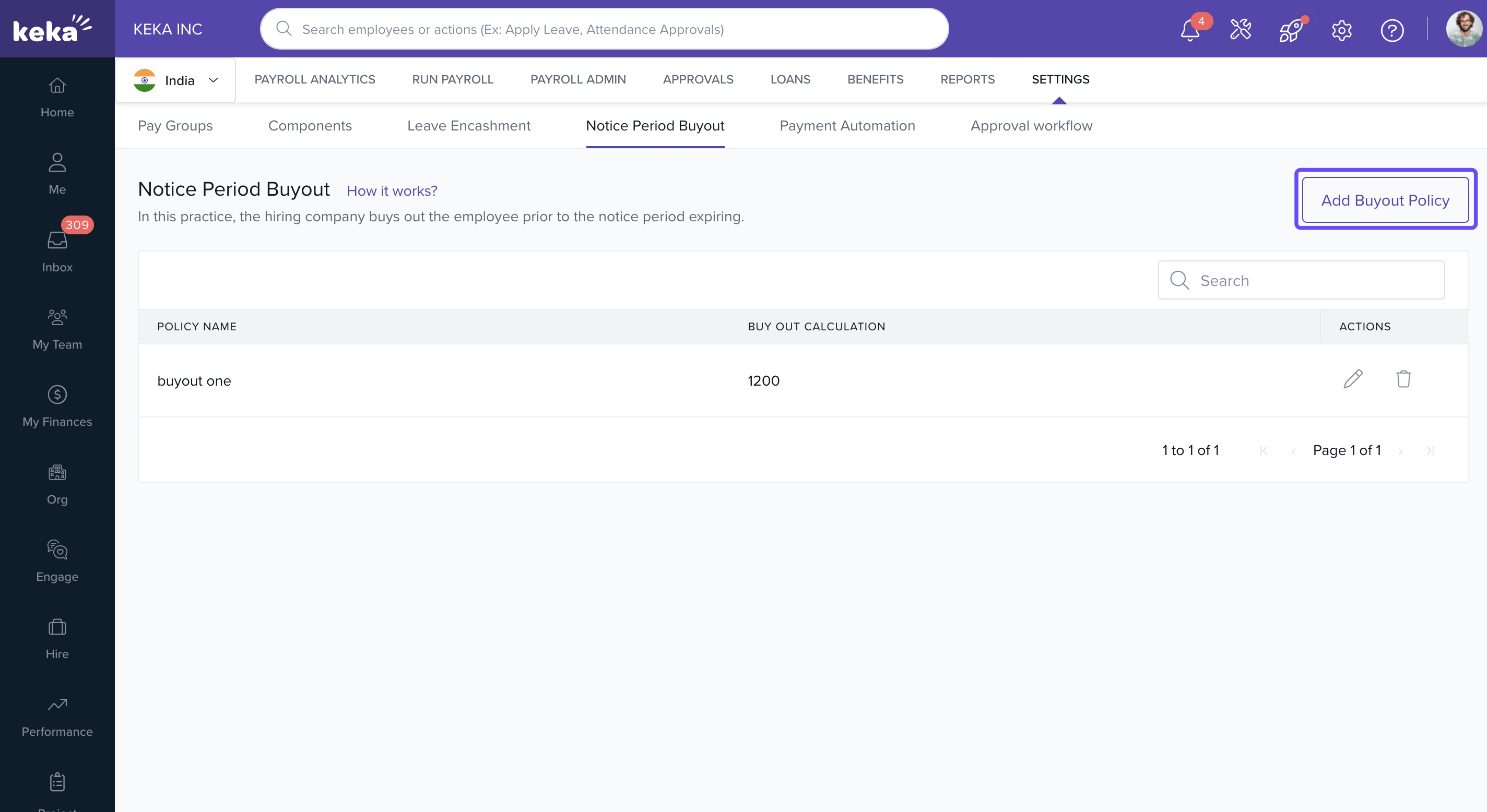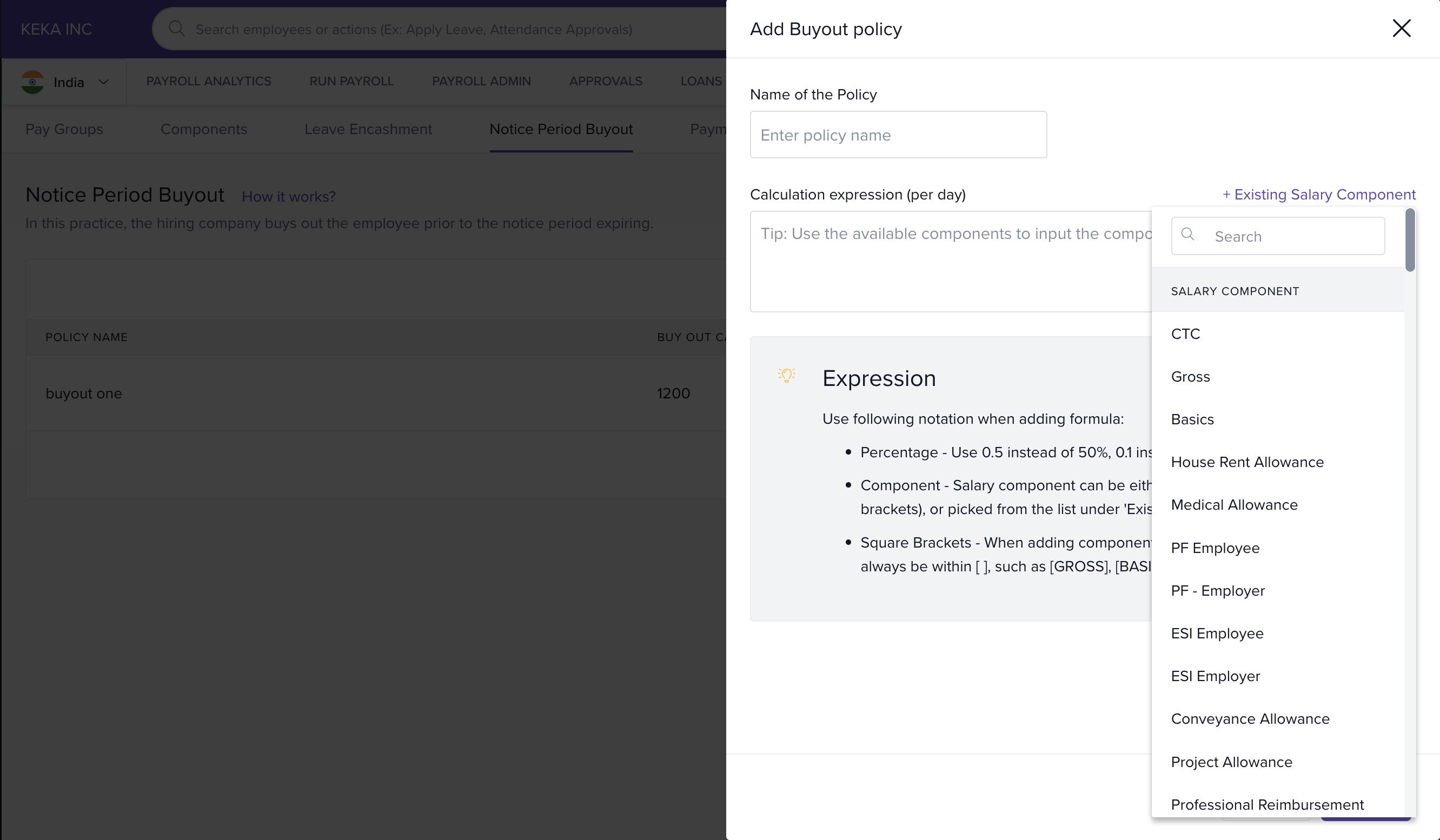 This guide walks you through setting up, editing, and deleting notice period buyout policies. You’ll define how the buyout amount is calculated based on salary components.