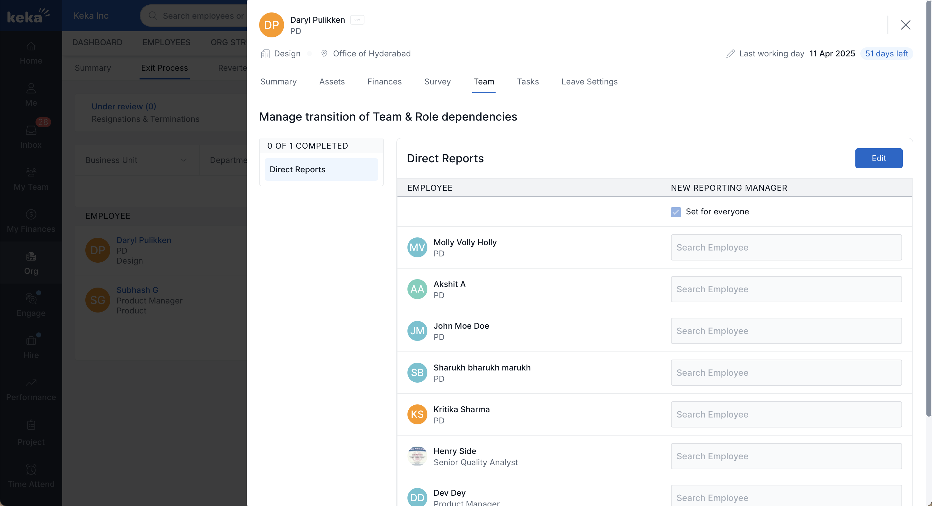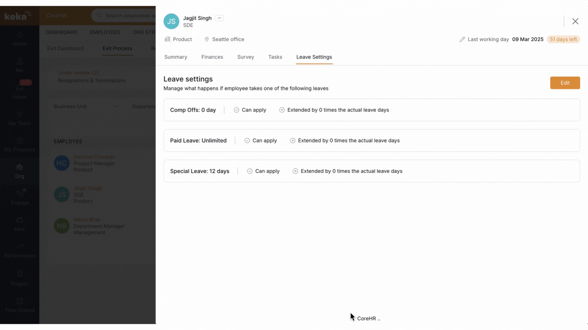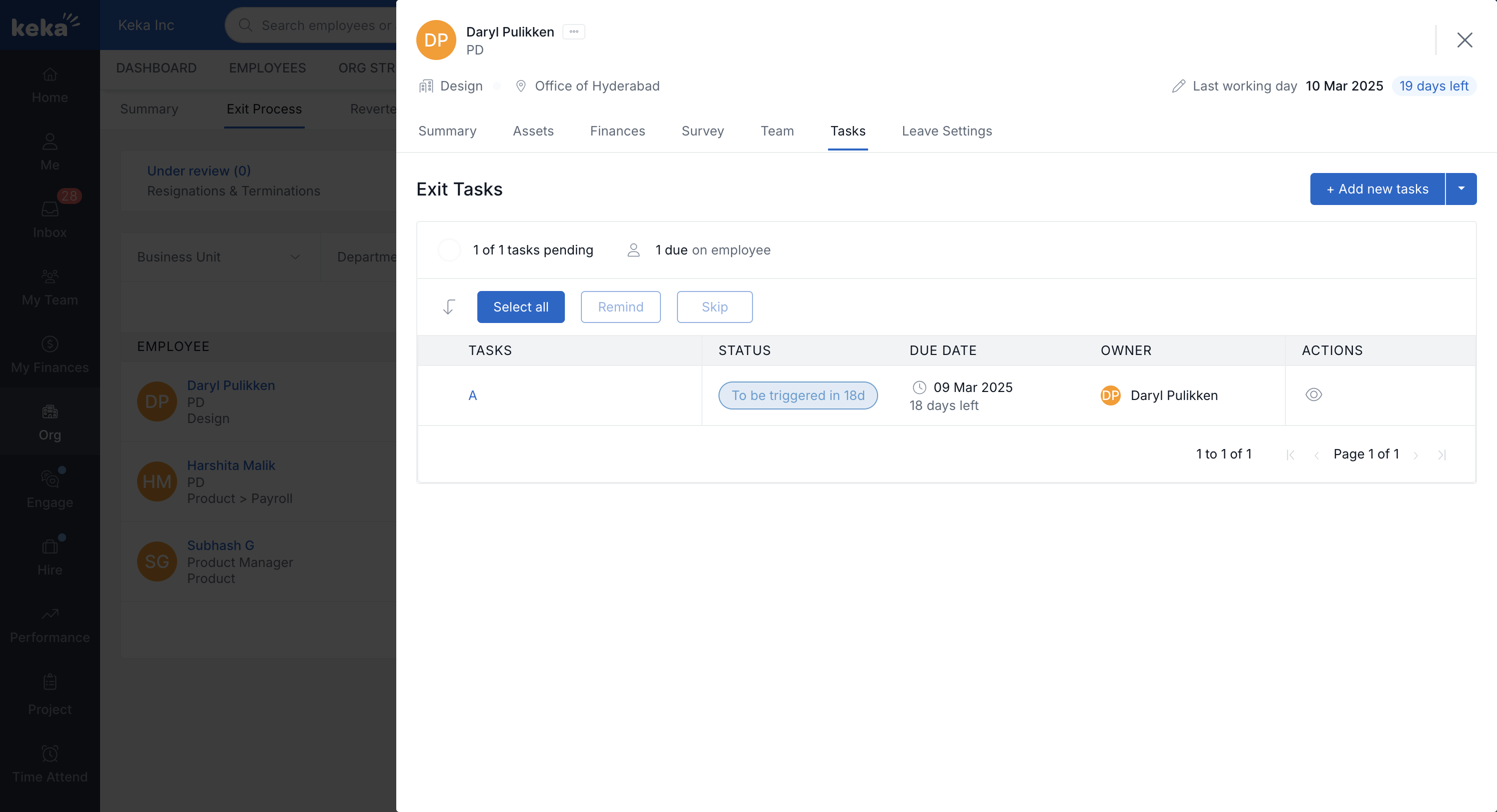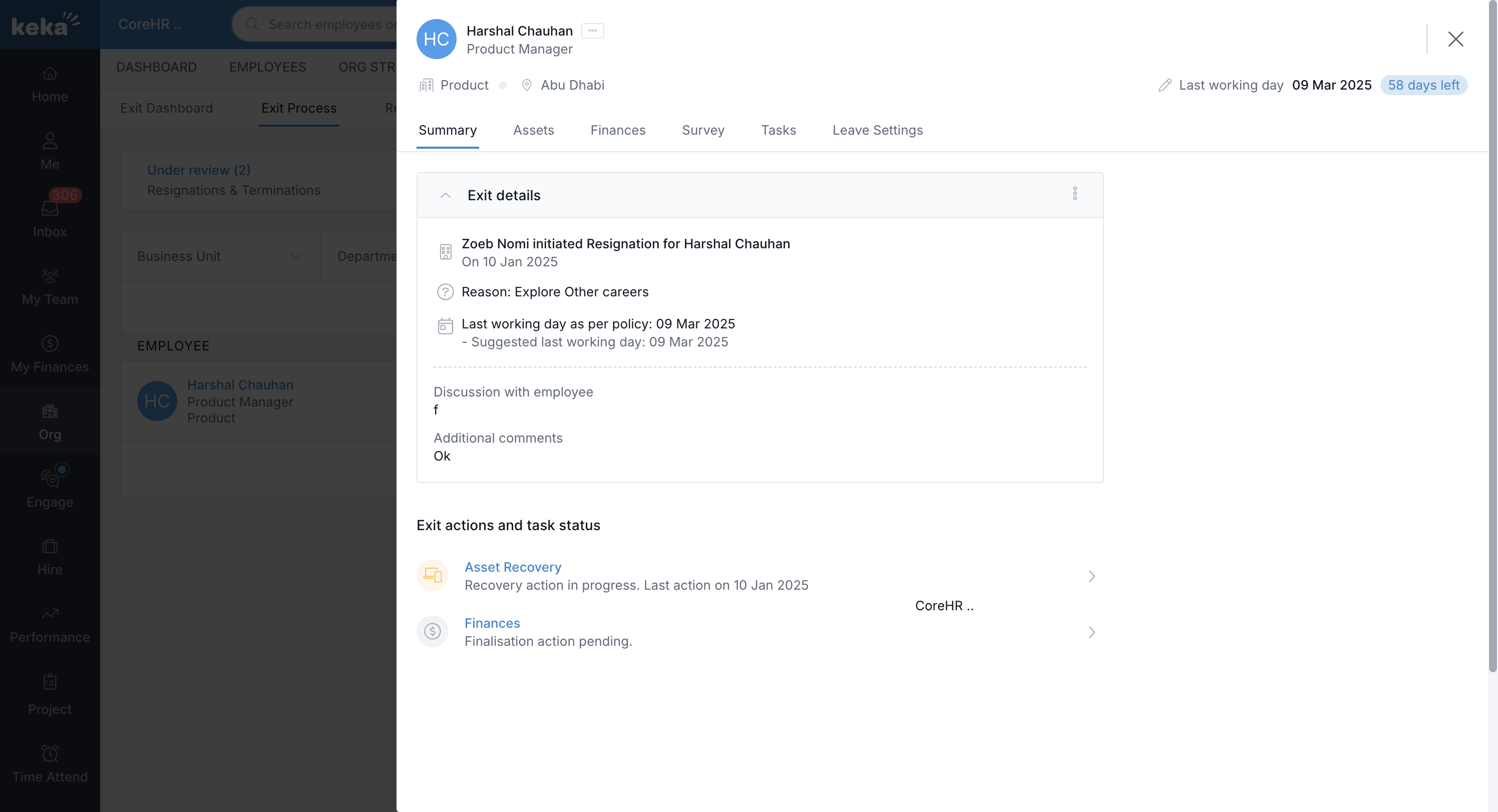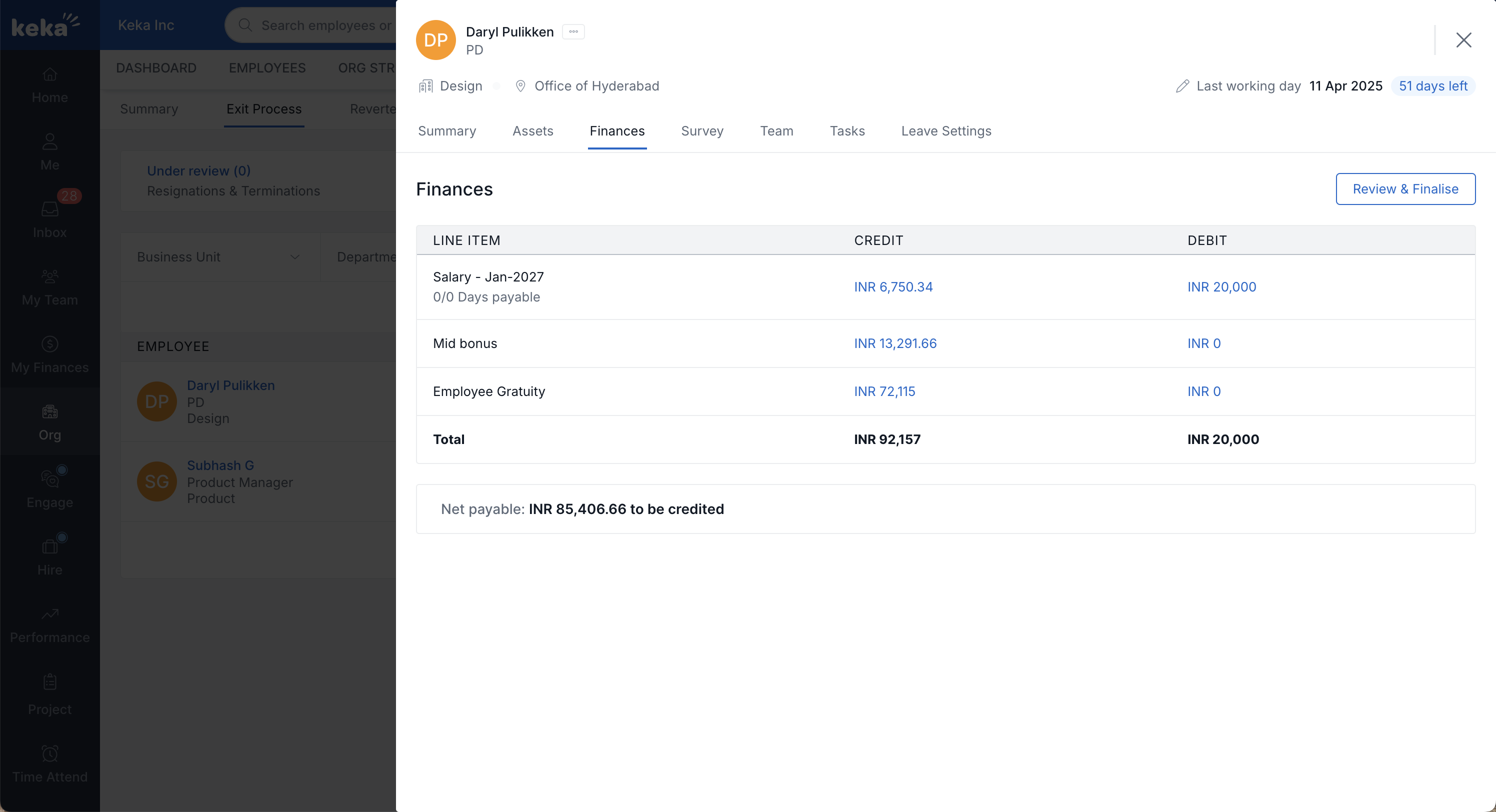 With these features in Keka HR, you can manage the exit process efficiently, ensuring that every step is completed and tracked. From reviewing resignation requests to finalizing settlements, Keka makes the exit process simple and organized.