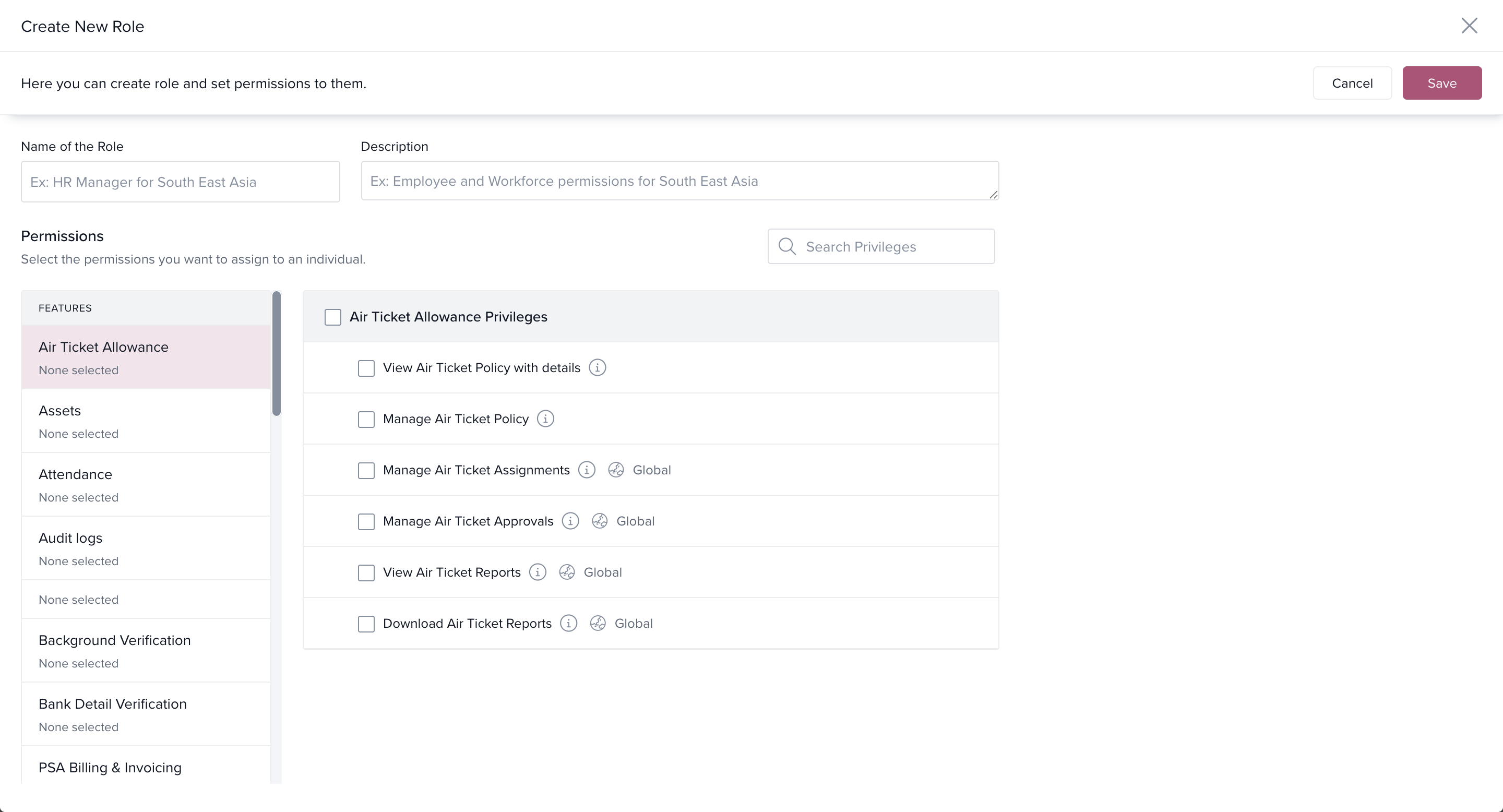 Define Role Details and Permissions