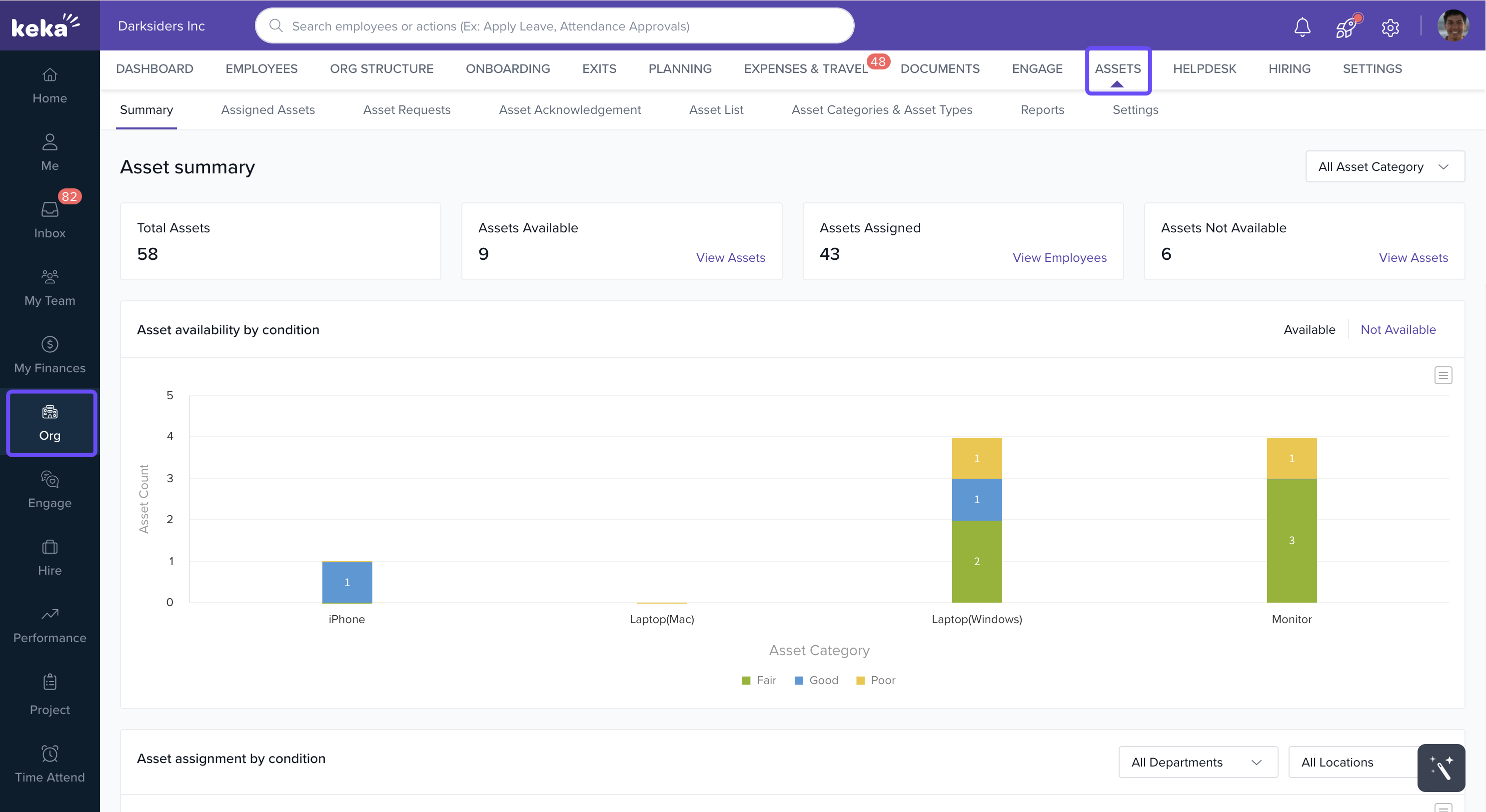 Here, admins can view, add, assign, and manage all assets within the organization.