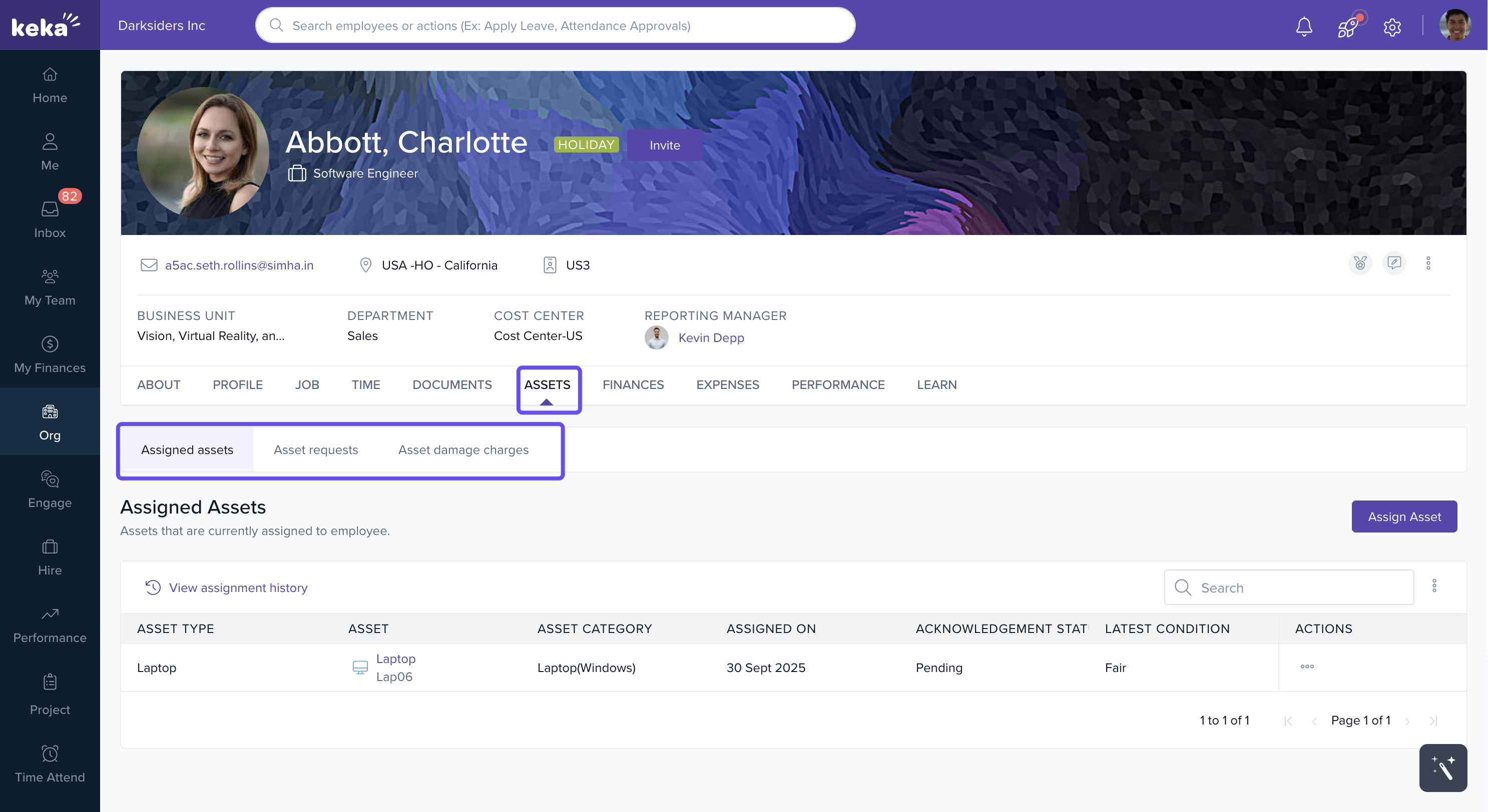 Keka allows management to impose charges on employees if an assigned asset is damaged.