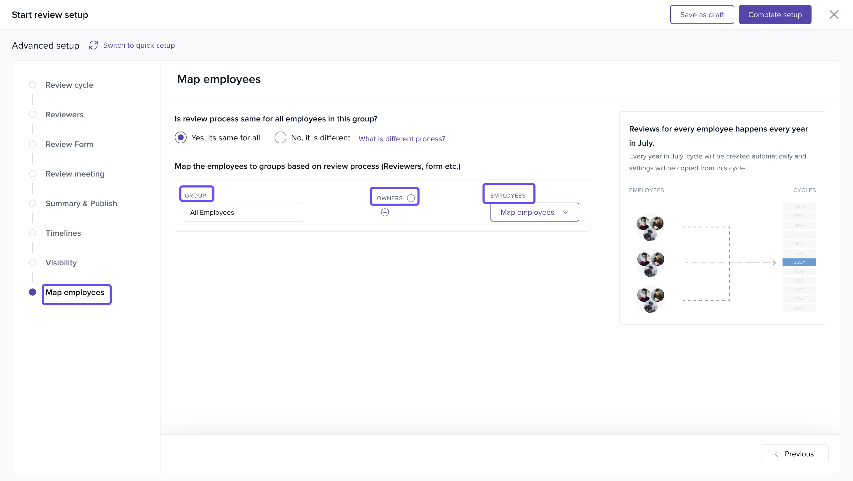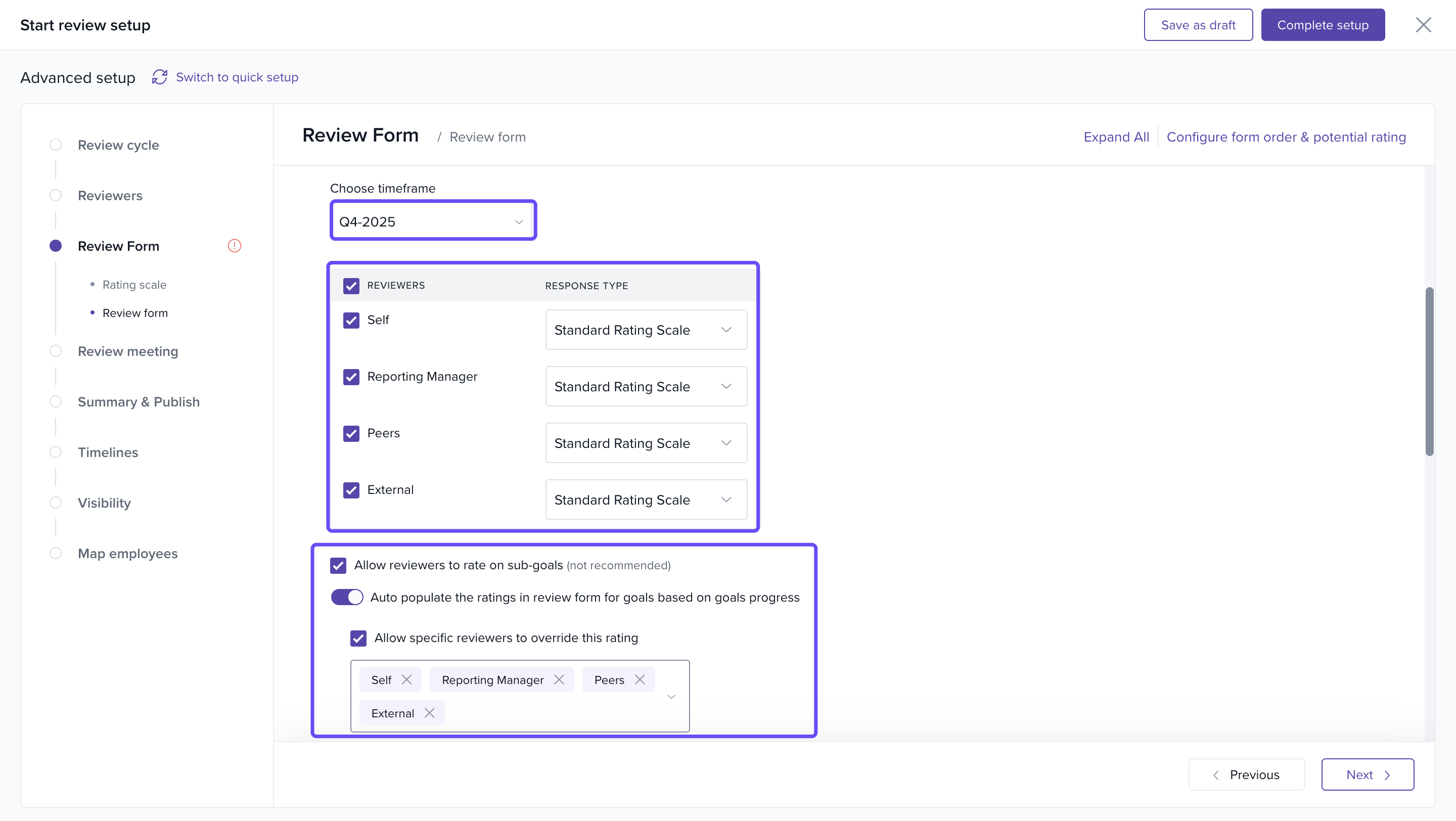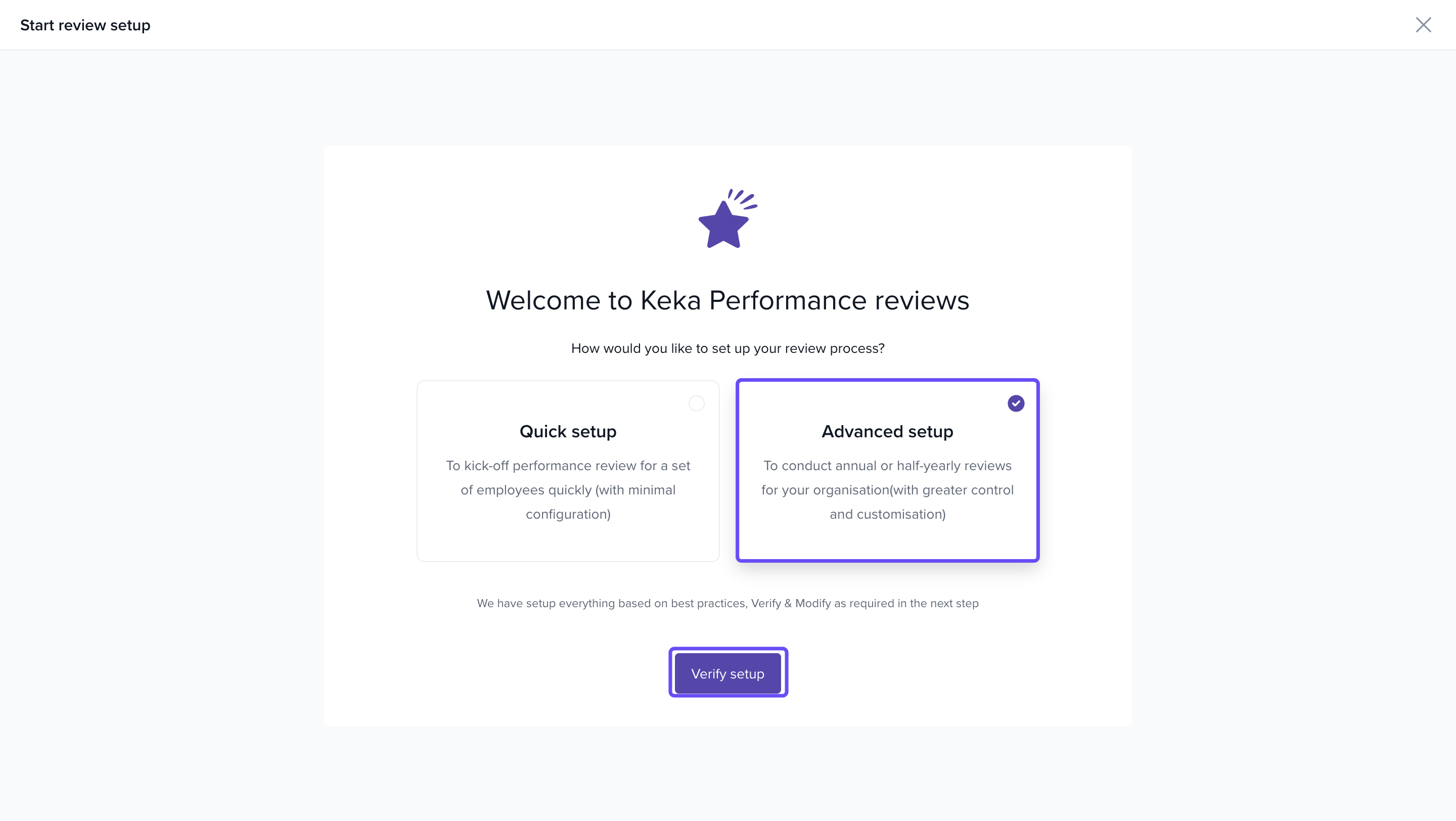 Advanced Setup: Best suited for larger organisations with multiple review cycles and a need for deeper customisation.