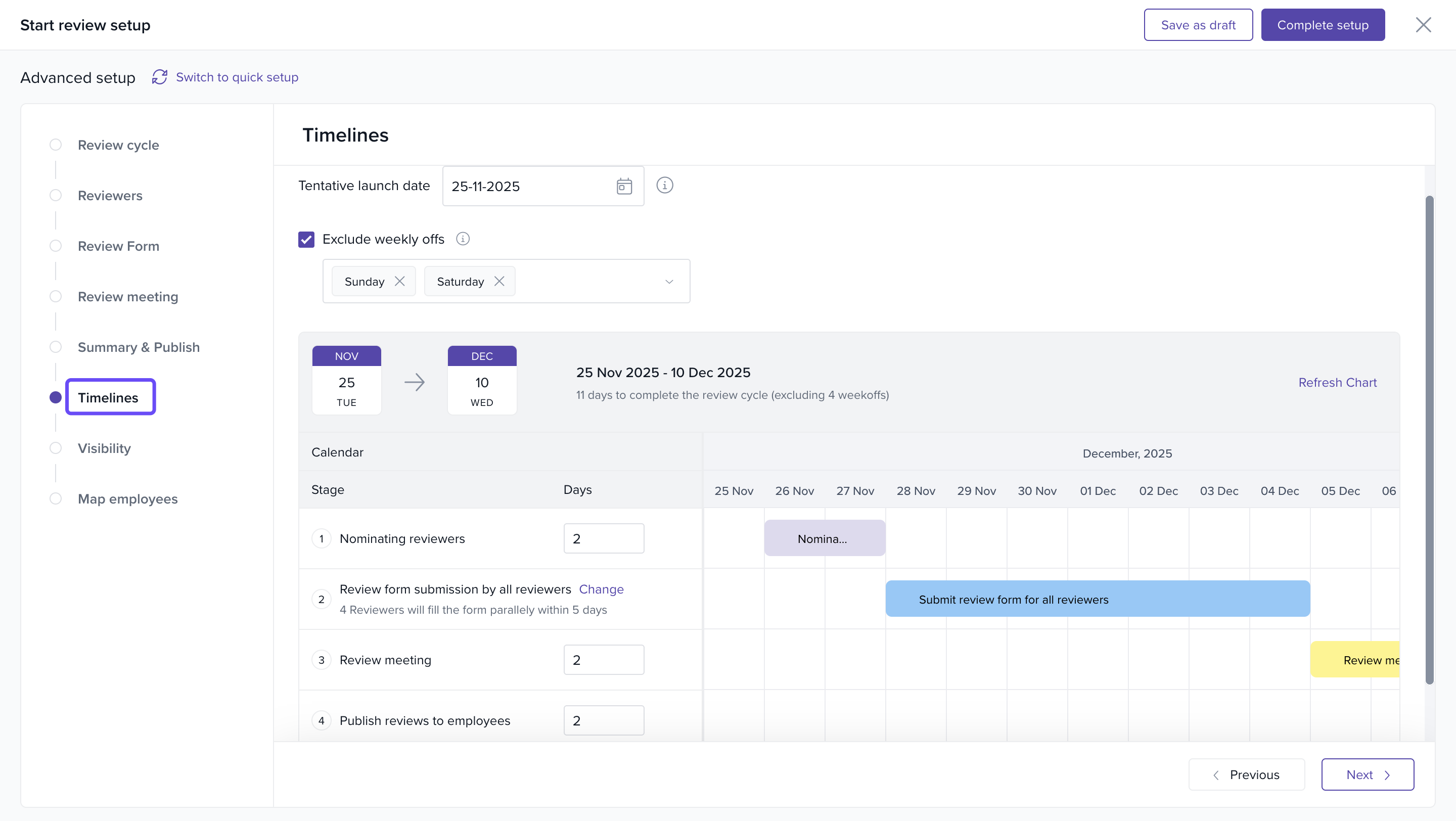 Once all these steps are completed, you have the choice to either launch the review cycle immediately or save it to make changes later.