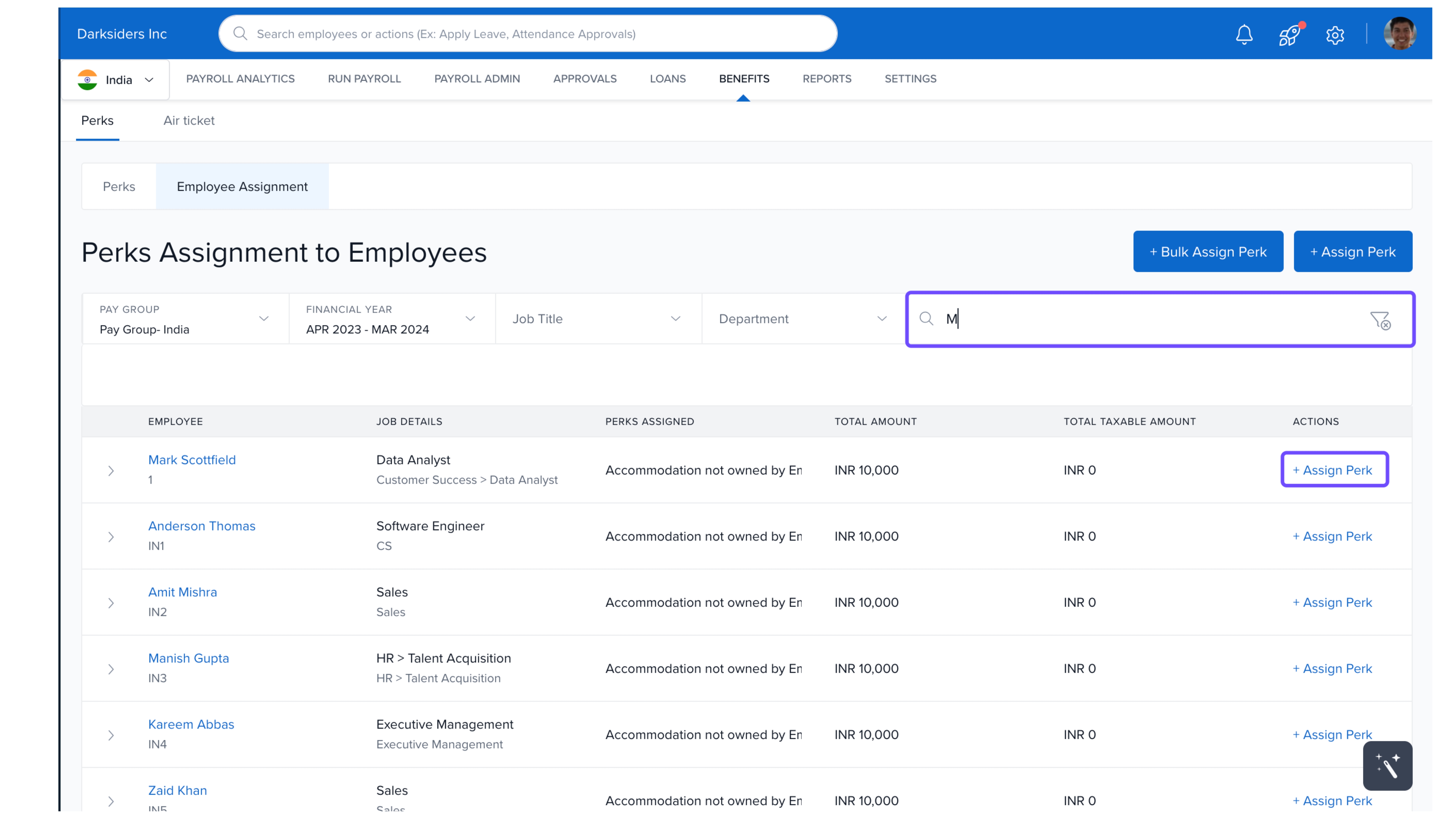 Go to Employee Assignment: This tab lists all employees and their perk statuses.