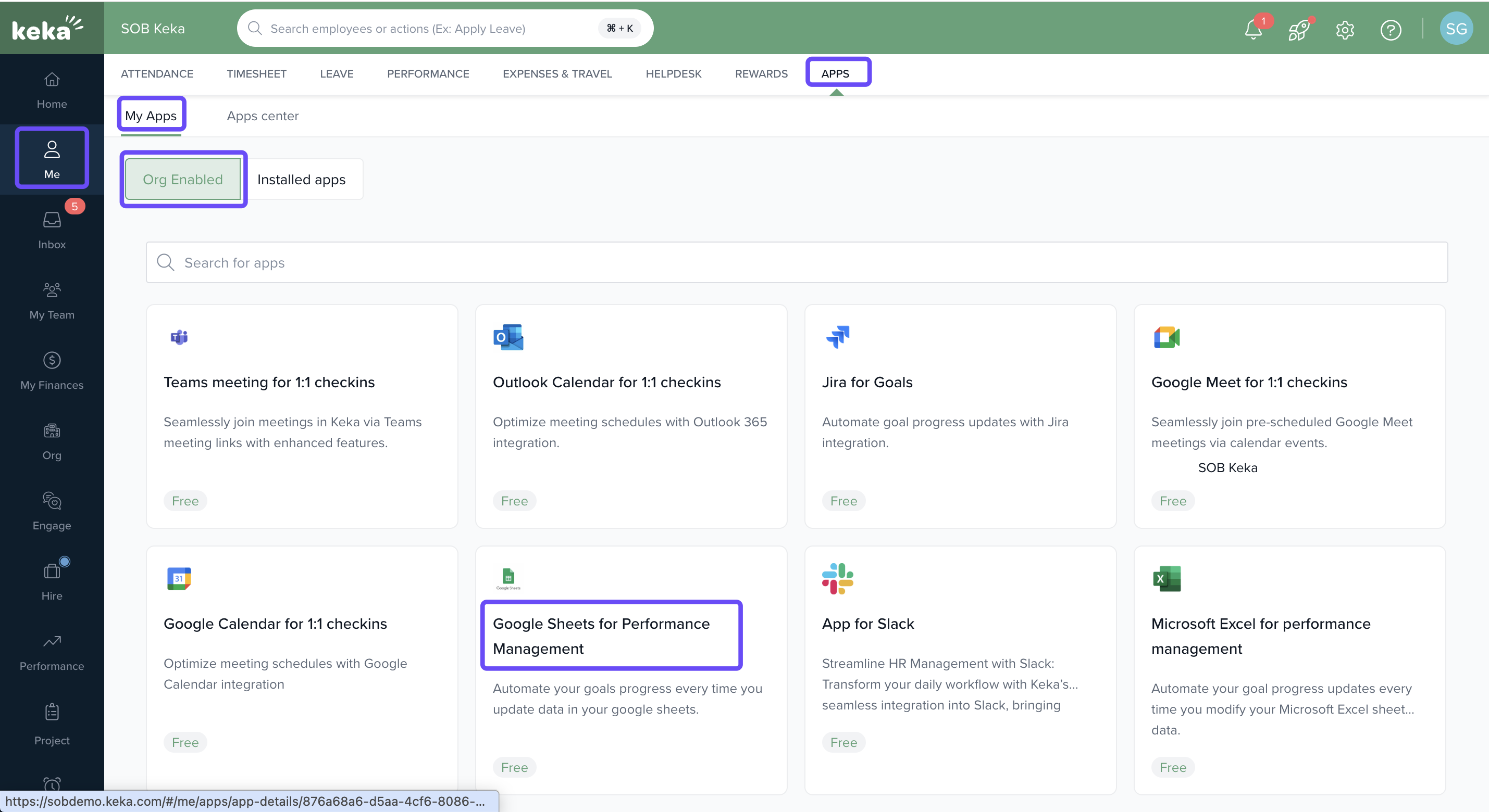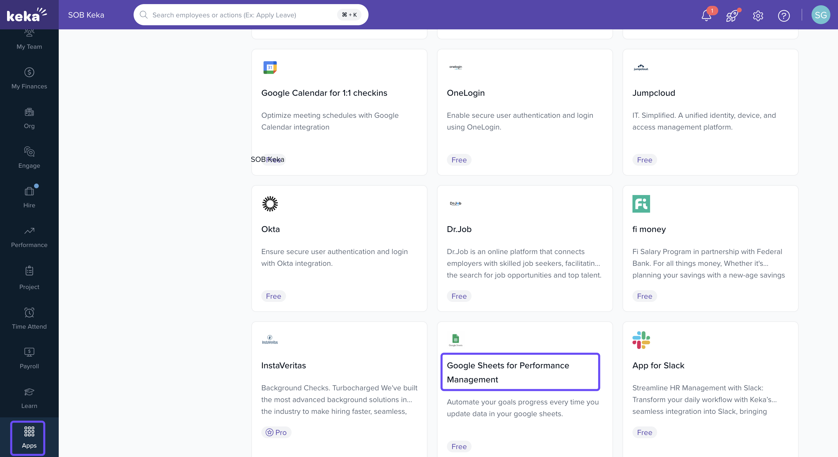 Go to the Apps section in your Keka dashboard.