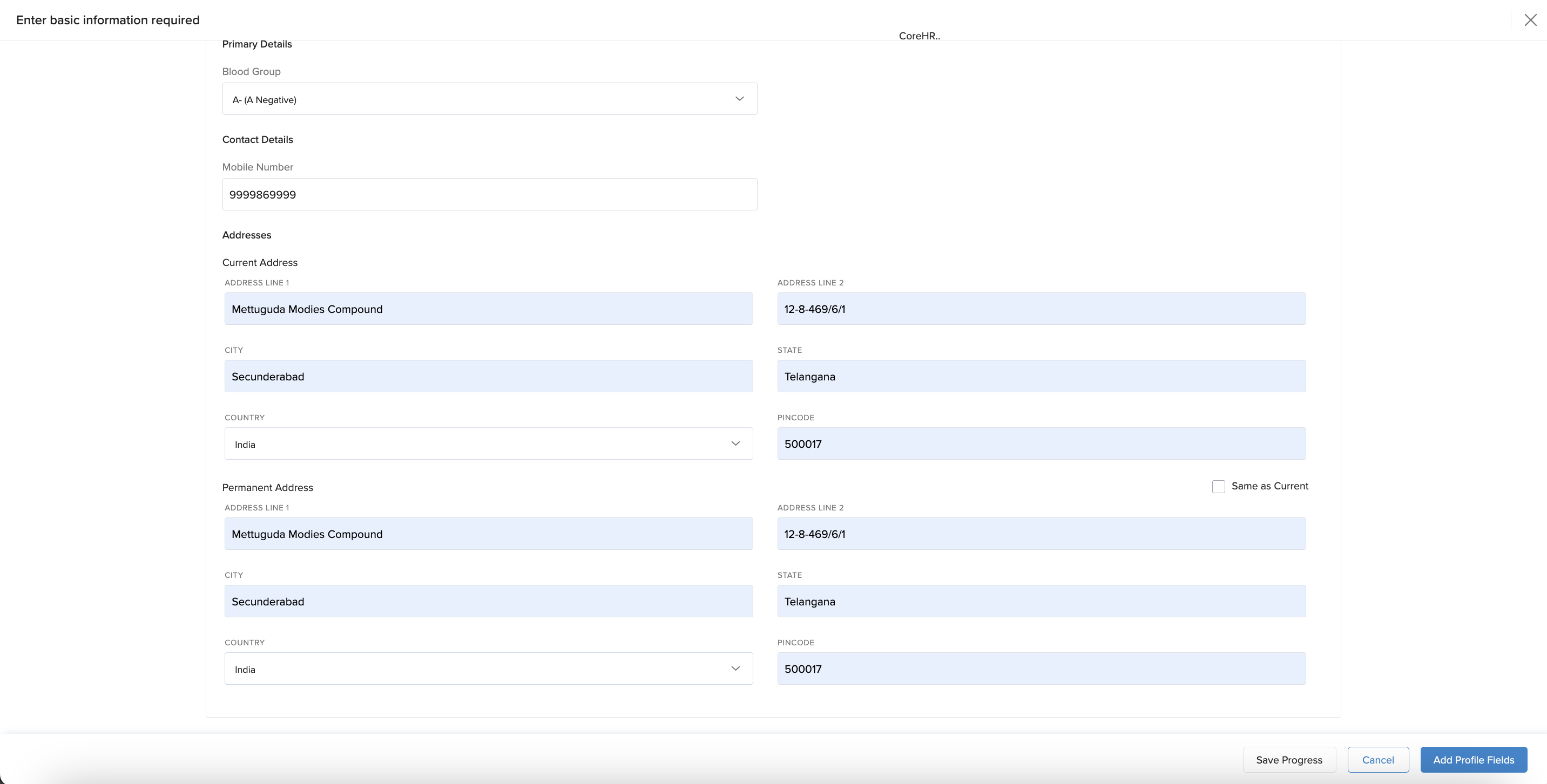 They can either save progress to edit later or click Add Profile Fields to complete the task immediately.
