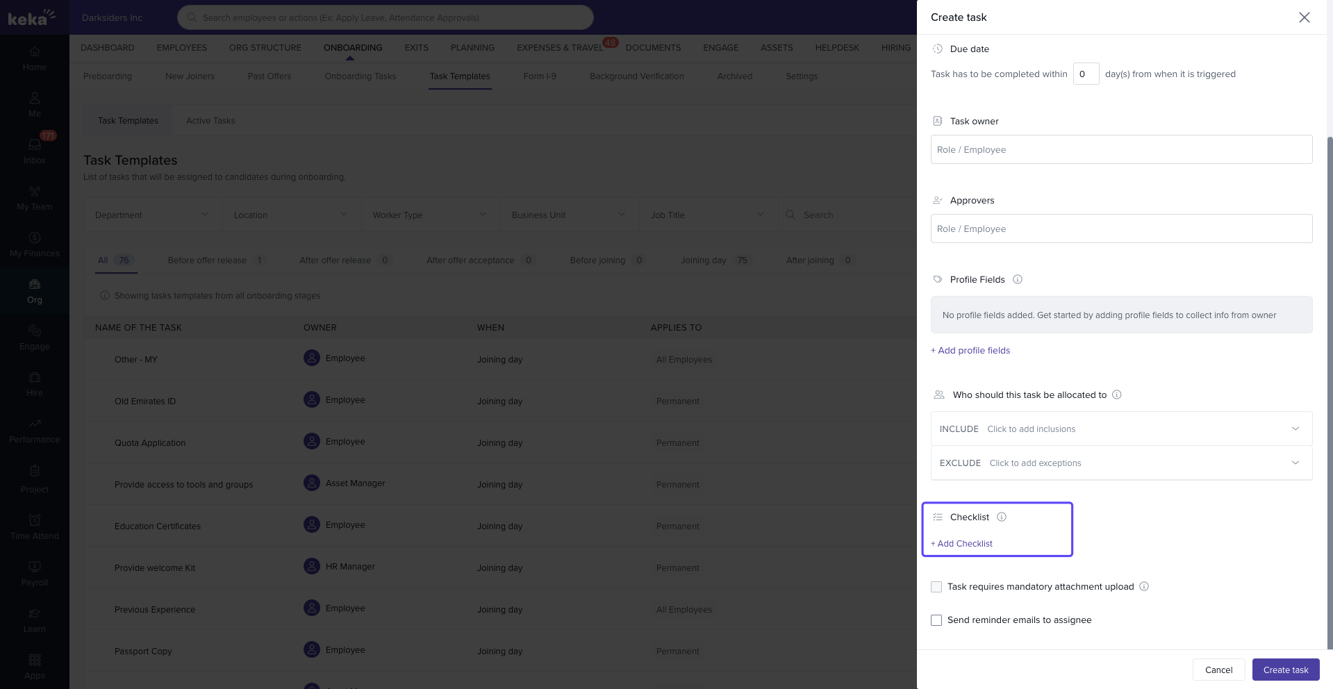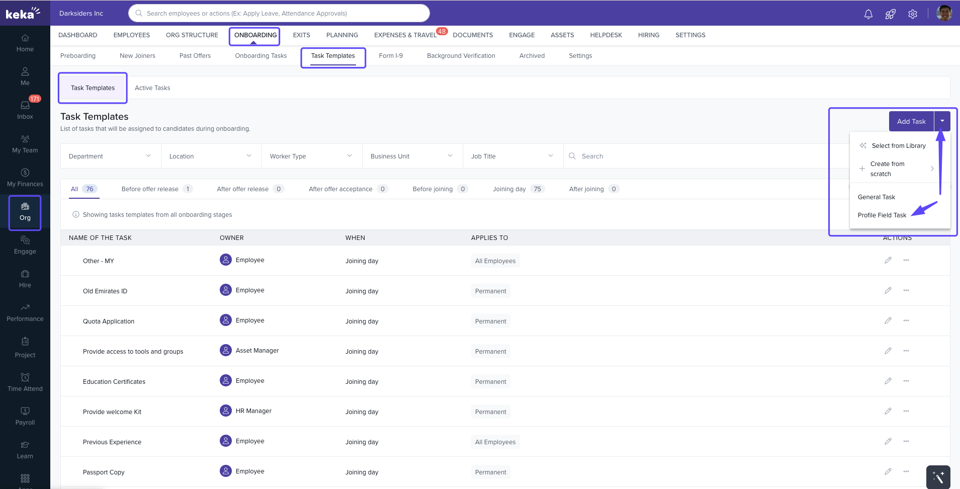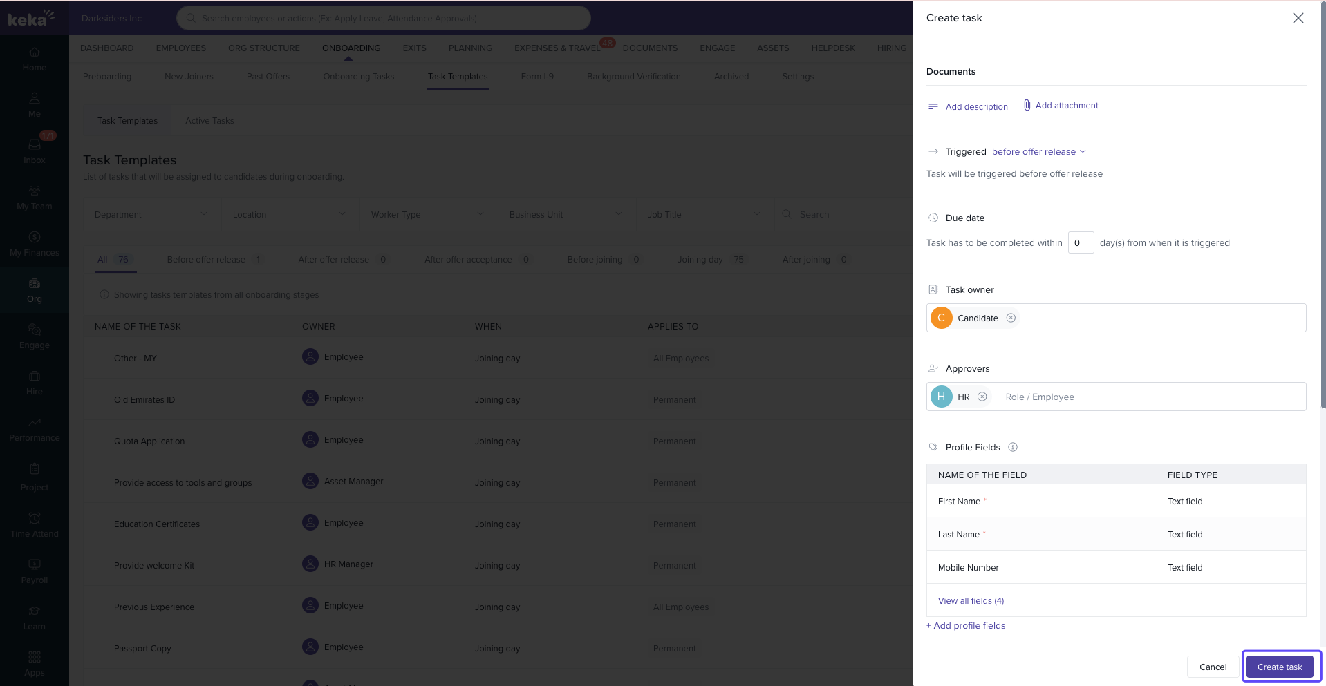For more guidance, visit the Keka Task Templates Help Page and start enhancing your onboarding workflow today.
