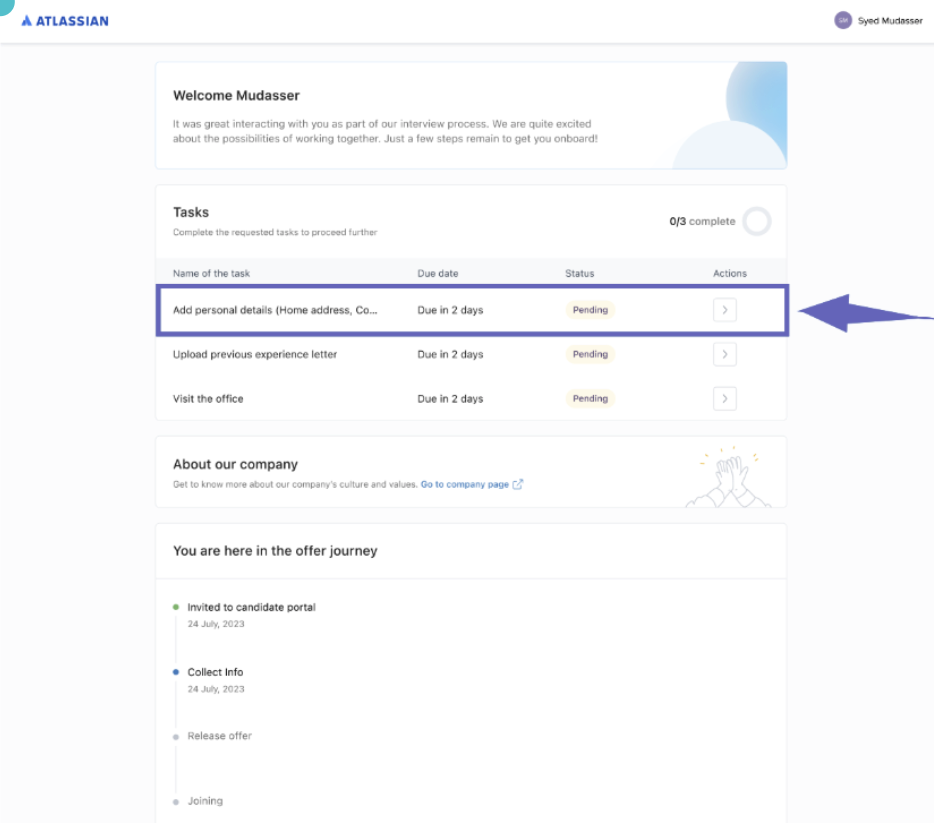 For candidates, the task appears in their Candidate Portal.