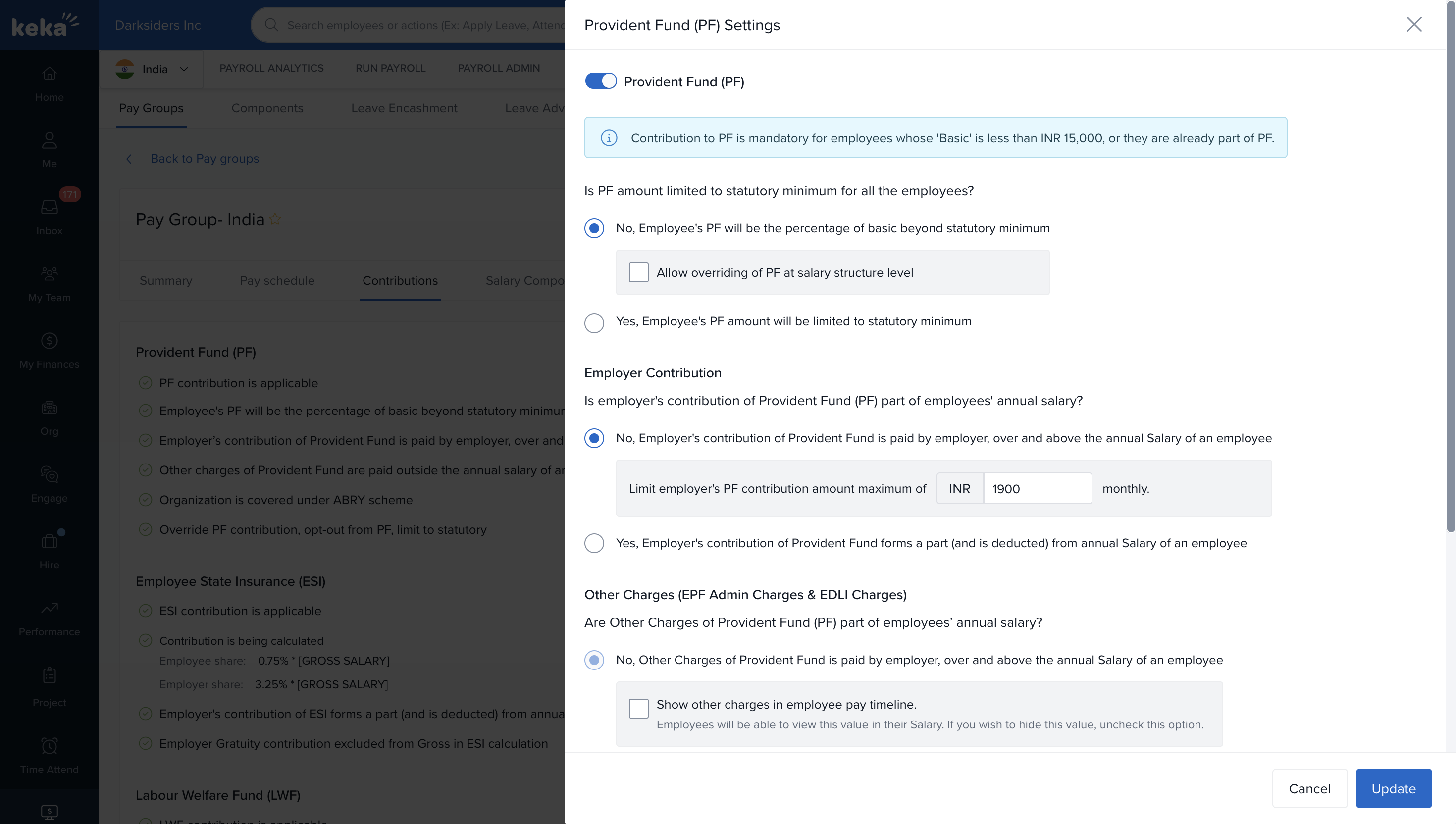 If a Pay Group is created for consultants or non-employees, the employer should disable PF (Provident Fund) contributions, as consultants are not eligible for PF under organizational rules.