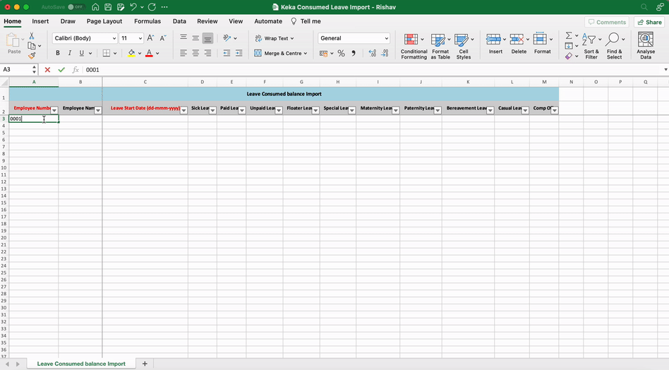 Note: Both import templates follow the same format, but the Consumed/Availed file includes one extra column—Leave Start Date.