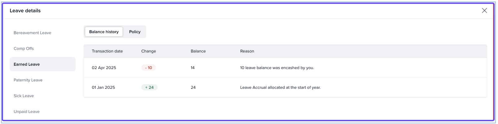 Check the Leave Balance section.