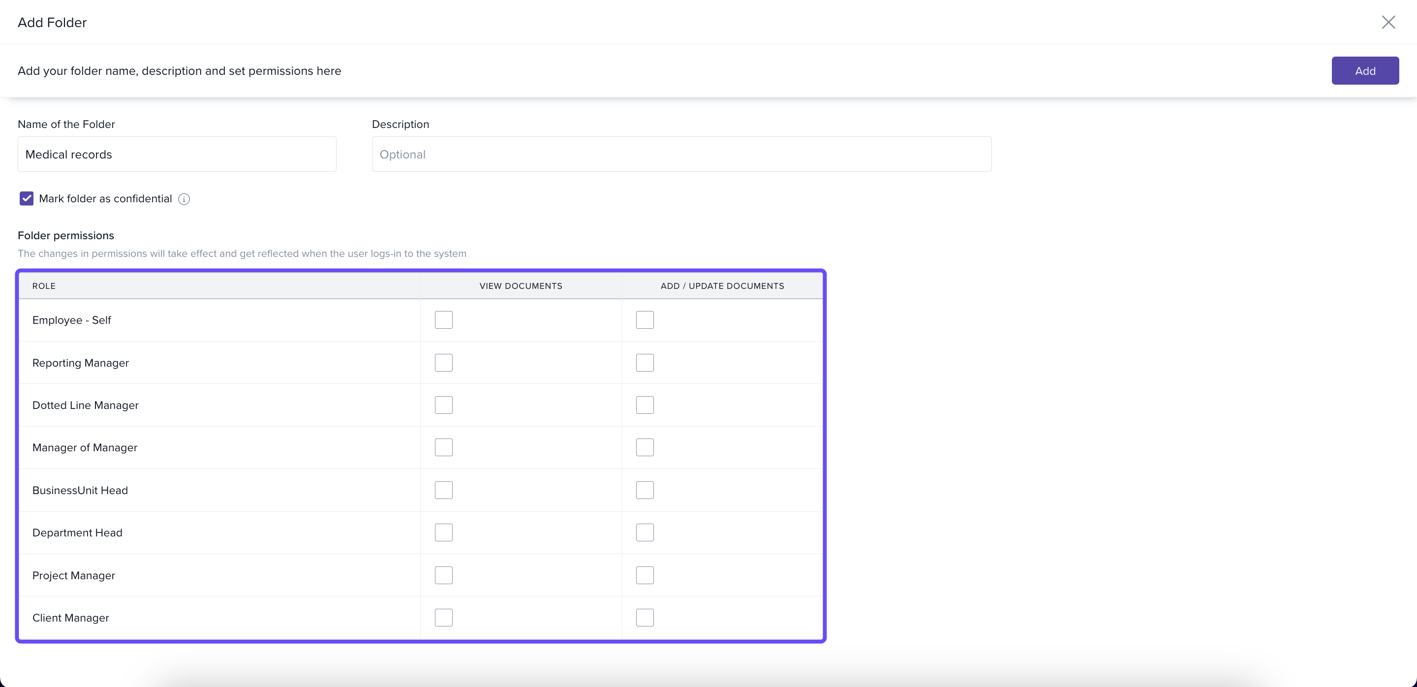 Check Mark folder as confidential if this folder should only be accessed by limited roles.