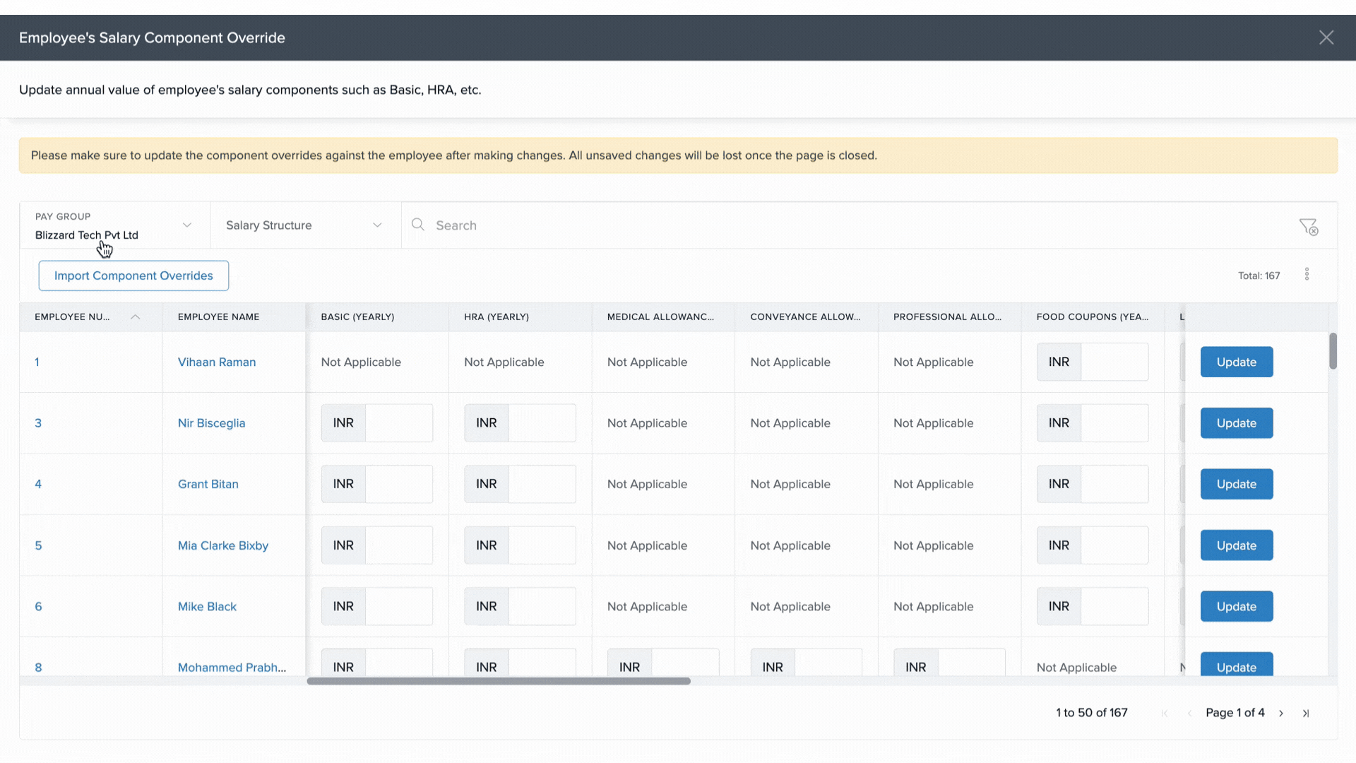 - Use filters at the top to select the Pay Group and optionally a Salary Structure.