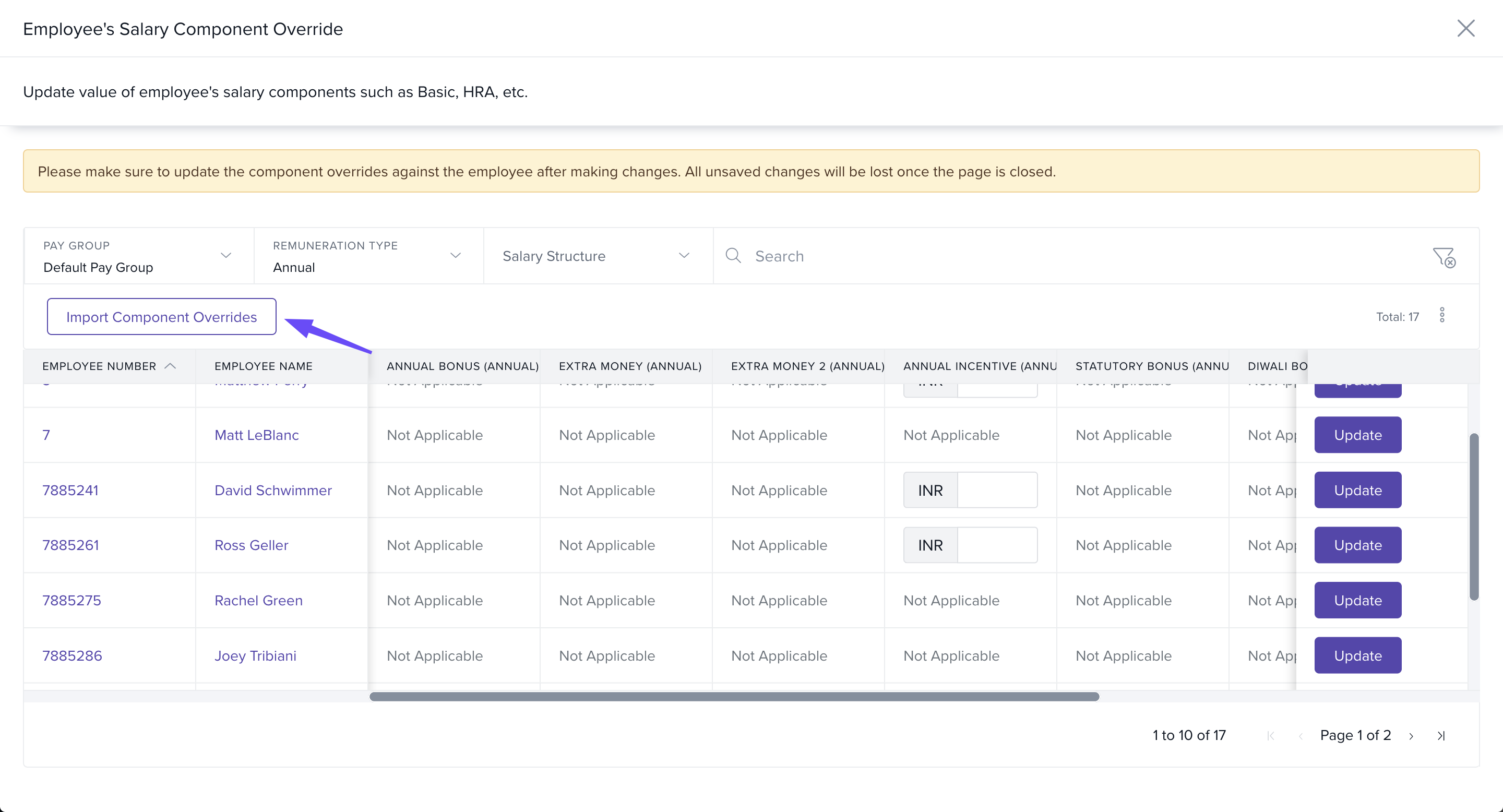 Note: If no override is set, Keka uses the value from the employee’s salary structure.