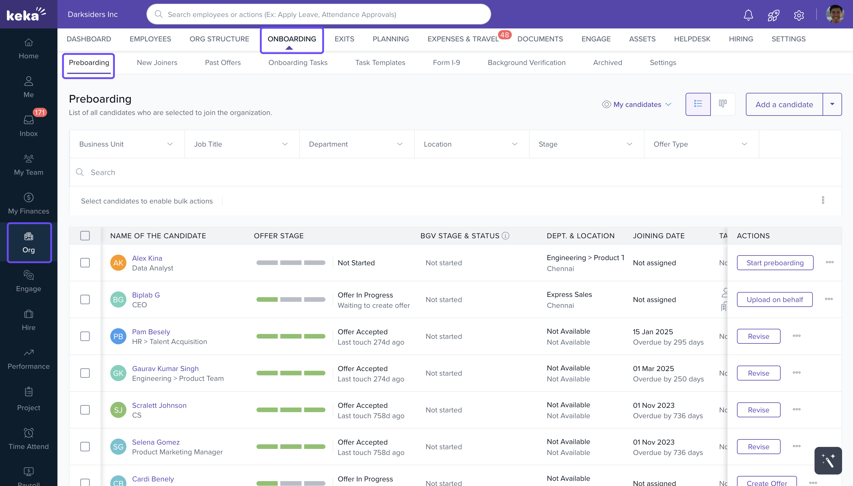 The Preboarding Page in Keka is an essential part of the onboarding process. It provides a centralized, efficient way to manage job offers, track candidate progress, and ensure a smooth transition from offer release to joining.