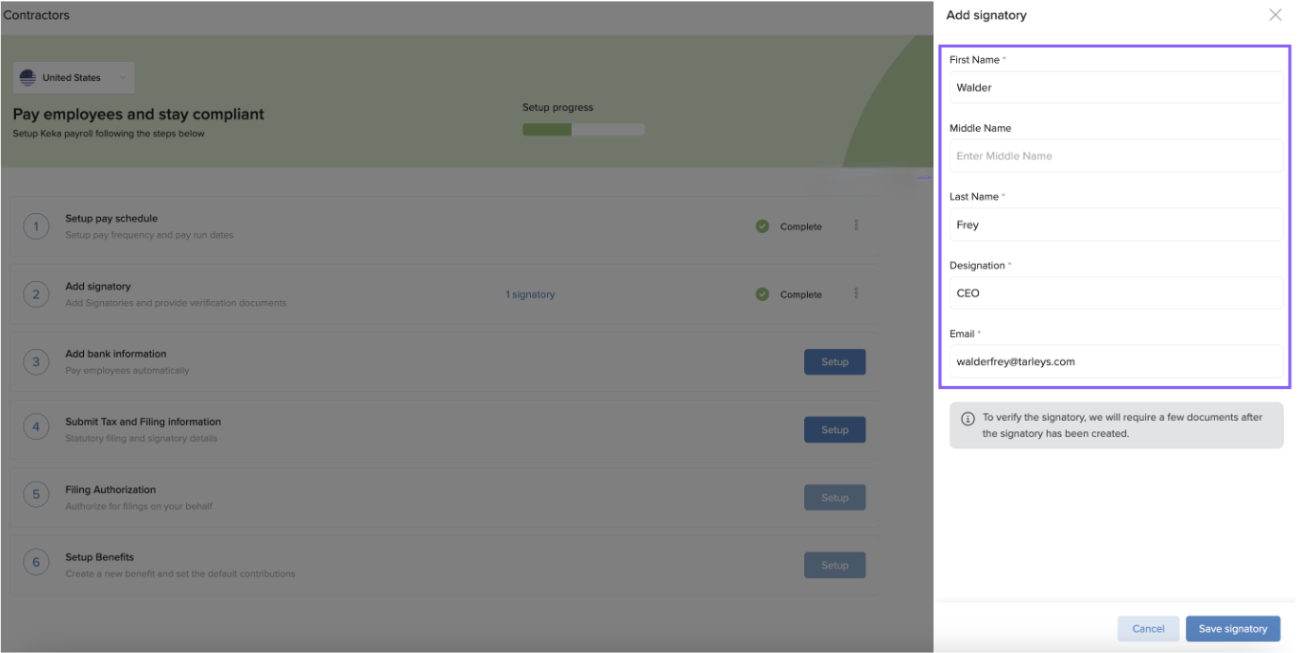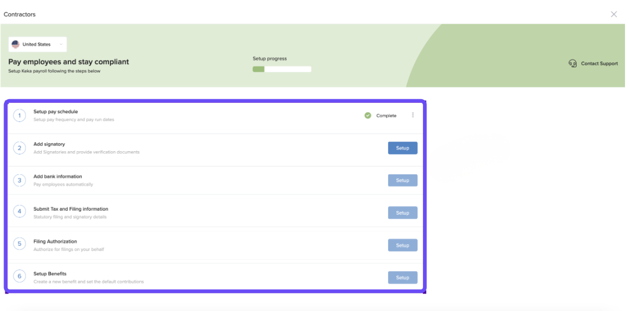 Setting up payroll within Keka’s system is a comprehensive yet efficient process designed to meet U.S. payroll norms. By following the outlined steps—establishing a pay schedule, entering signatory and bank details, configuring tax filings, and authorizing transactions—you ensure a smooth and compliant payroll operation.