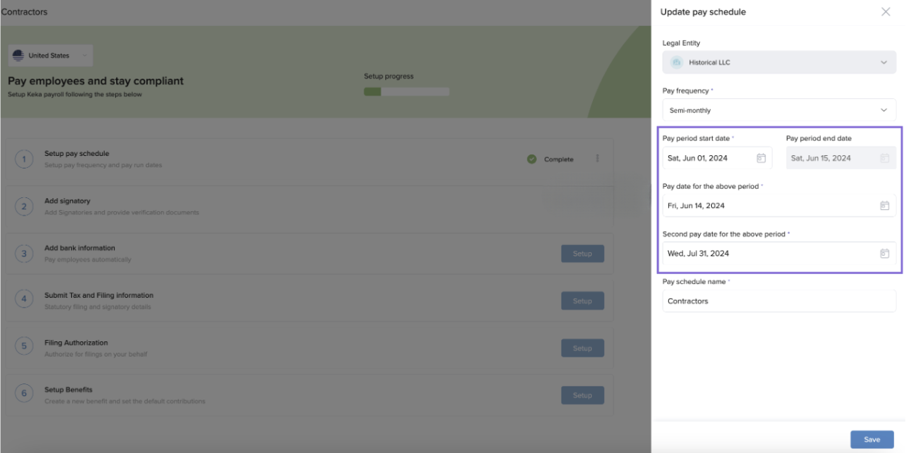 Setting up payroll correctly is critical for ensuring your employees are paid on time while meeting all U.S. tax and legal requirements. Keka’s step-by-step payroll setup process covers everything from defining your pay schedule to verifying banking details and configuring tax filings.