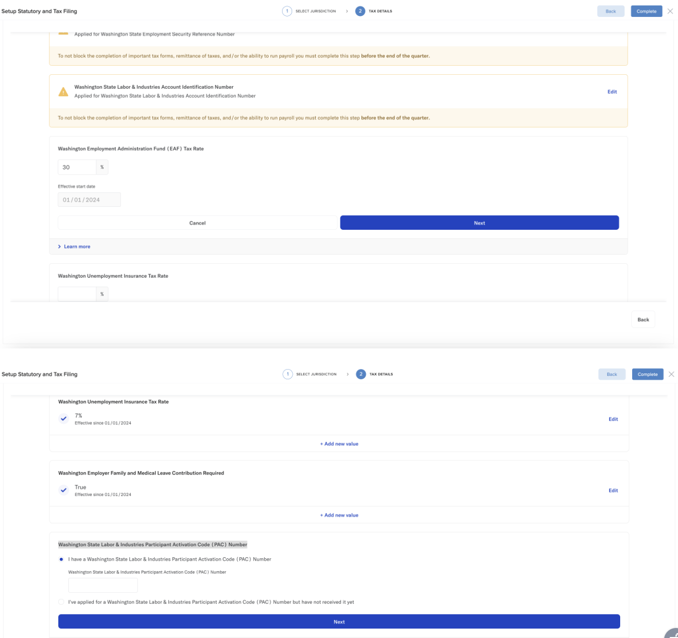 After you create a new pay group, you’ll need to complete six setup steps. If your legal entity, bank, or signatory details are already entered, those sections may auto-fill. Otherwise, you’ll be guided through each setup screen.