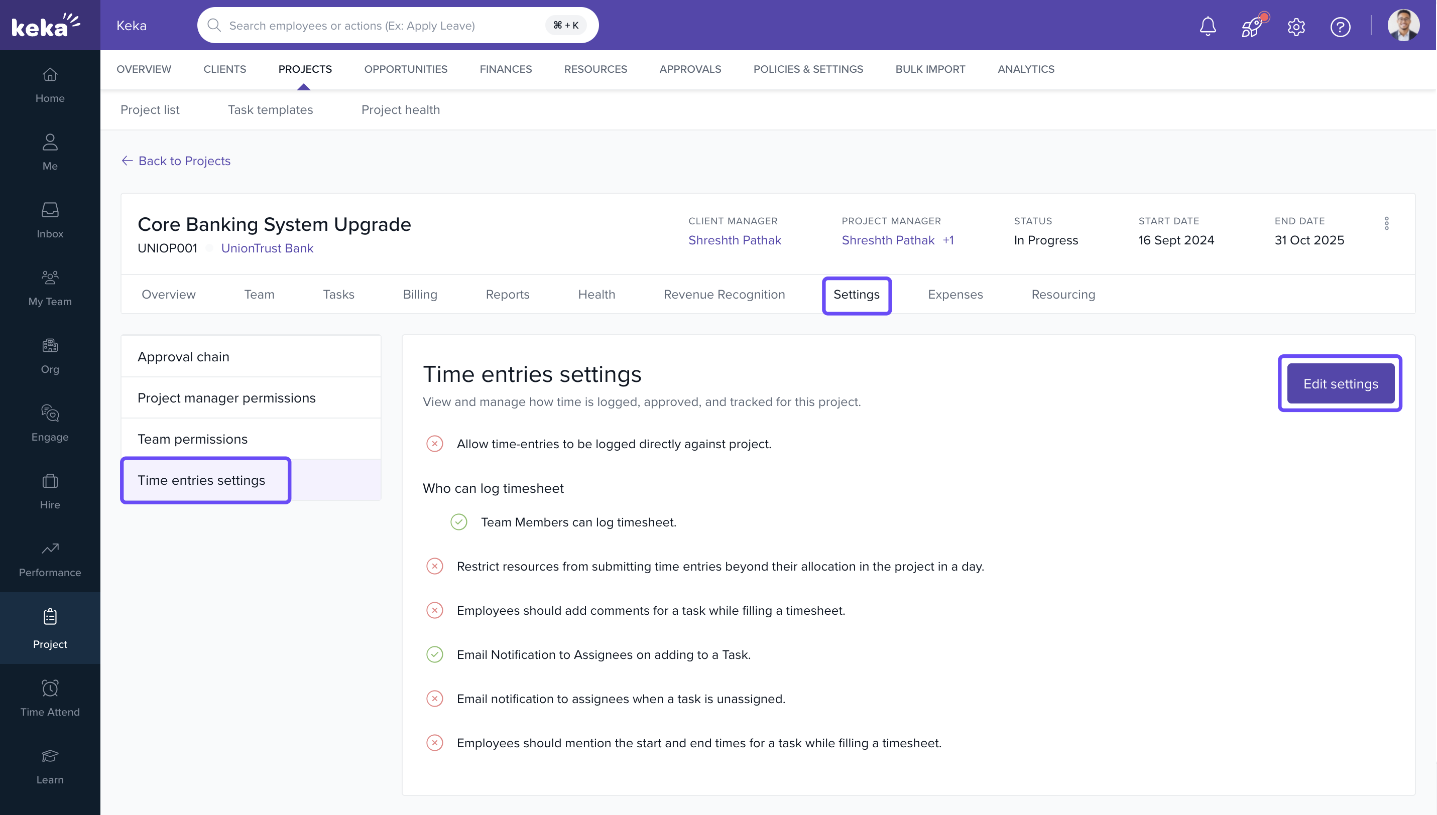 Example: If an employee is allocated 50% to a project and is available for 8 hours per day, they can submit a maximum of 4 hours per day on that project.