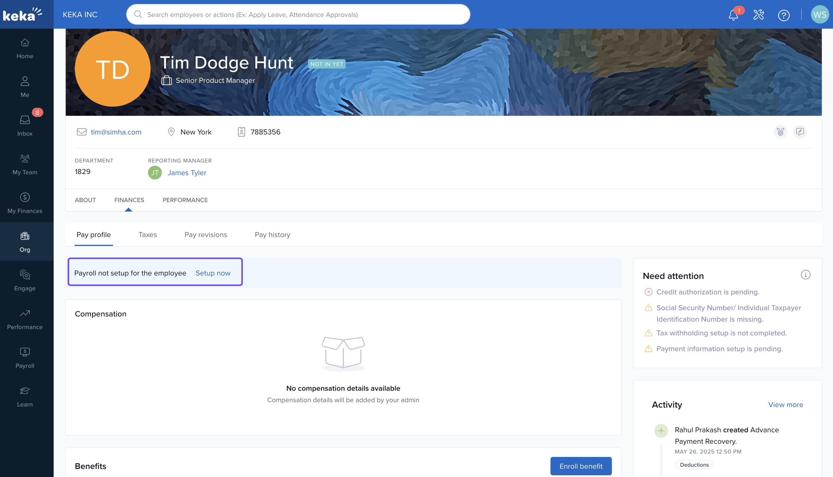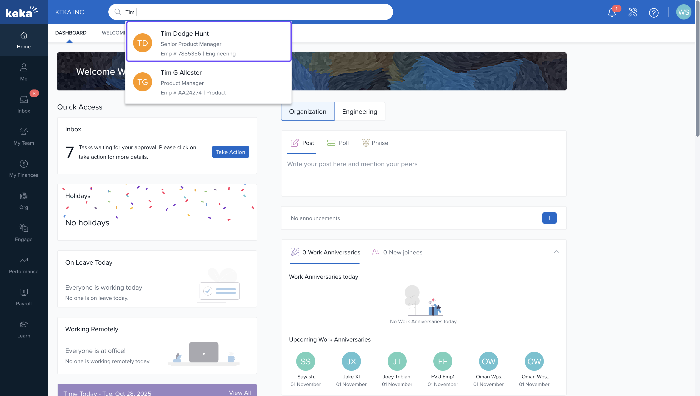 Find the employee using the search bar on your Keka dashboard.