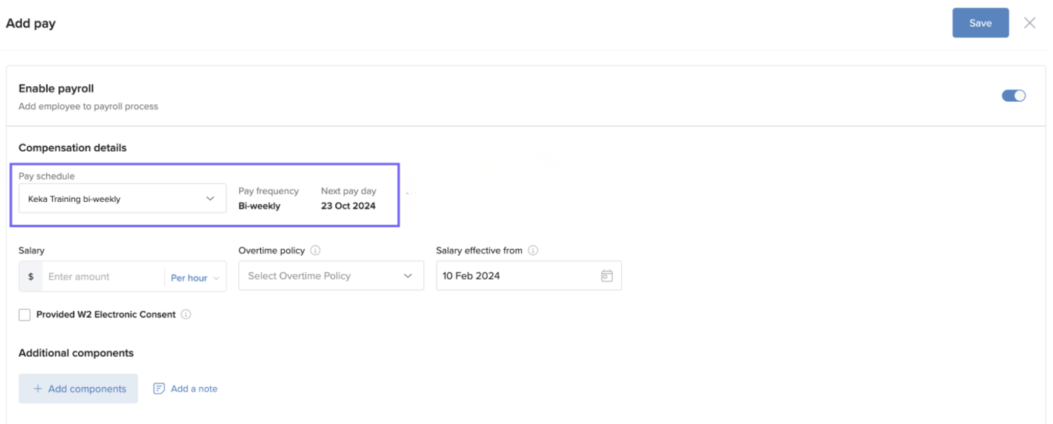 - Click Save to finish setting up payroll for this employee.